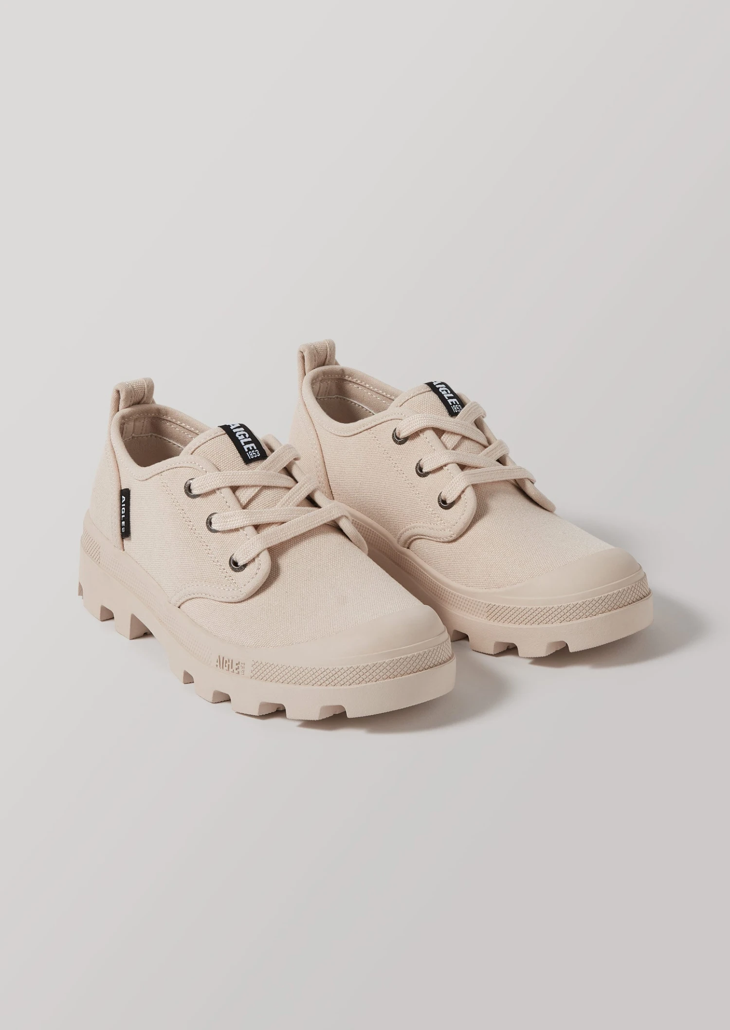 Trainers crafted by Aigle, which can trace its roots back to 1853 and owns the only natural rubber boot manufacturing plant in France. Made from organic cotton with a chunky rubber tread sole that extends upwards to cover the toe.