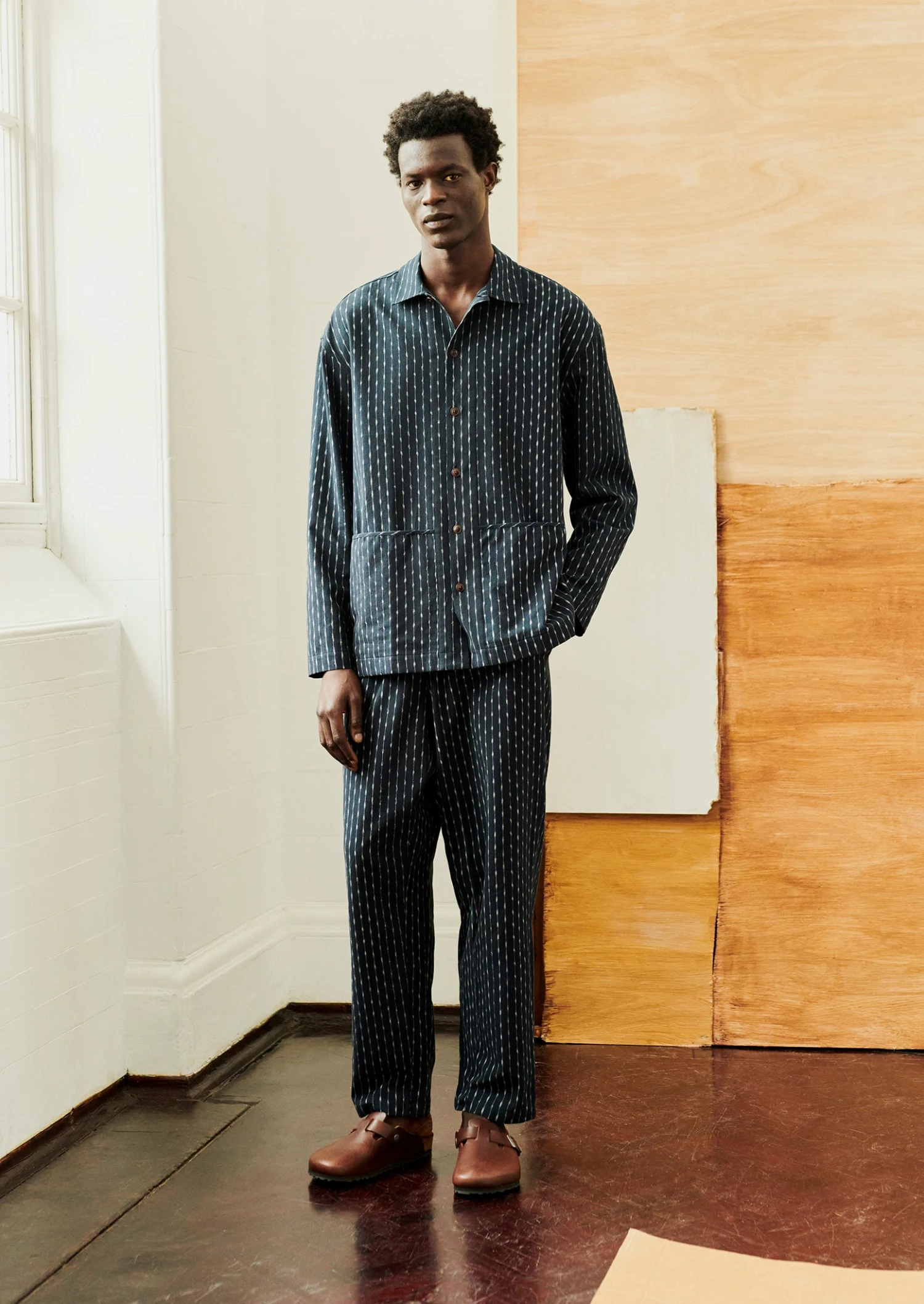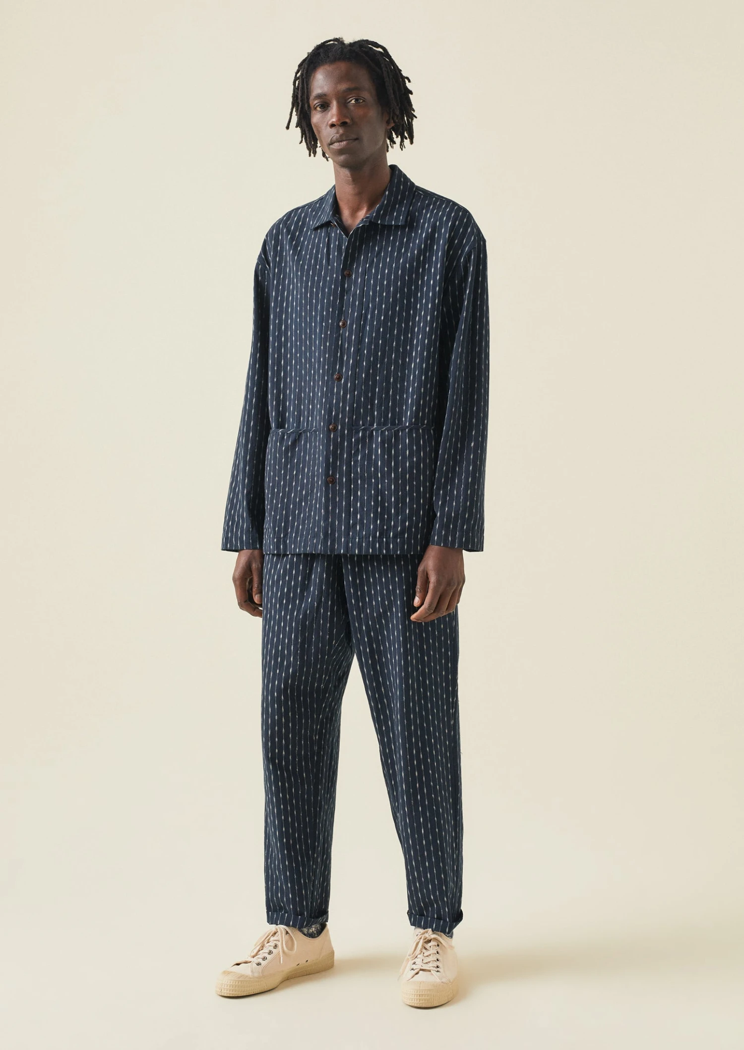 Alfie Cotton Ikat Lounge Trousers | Slate/Ecru