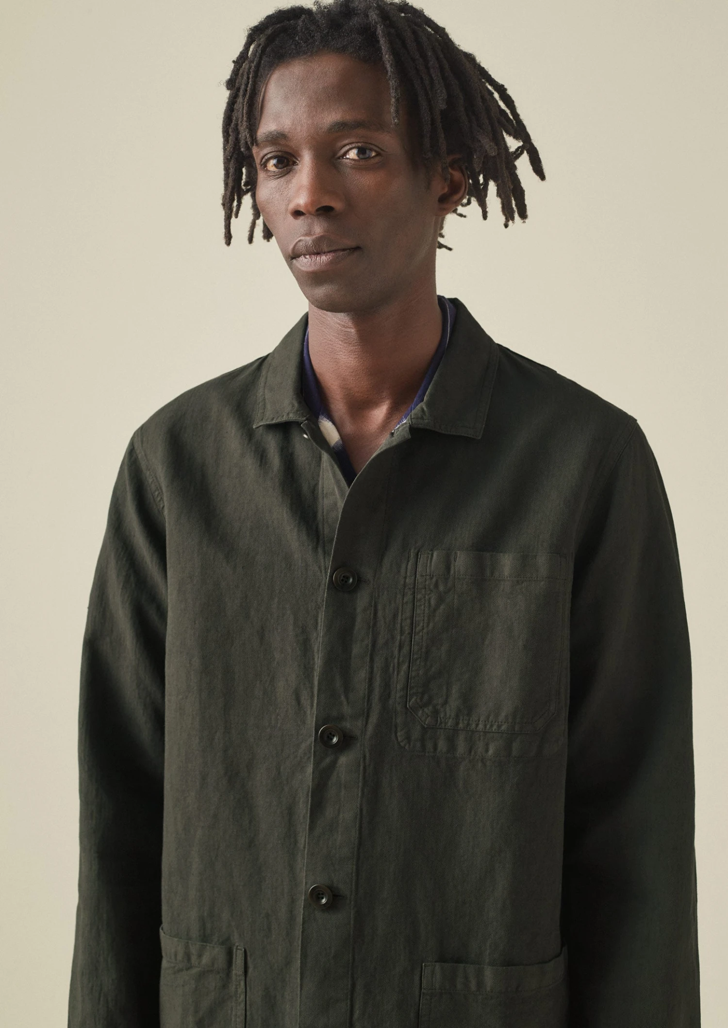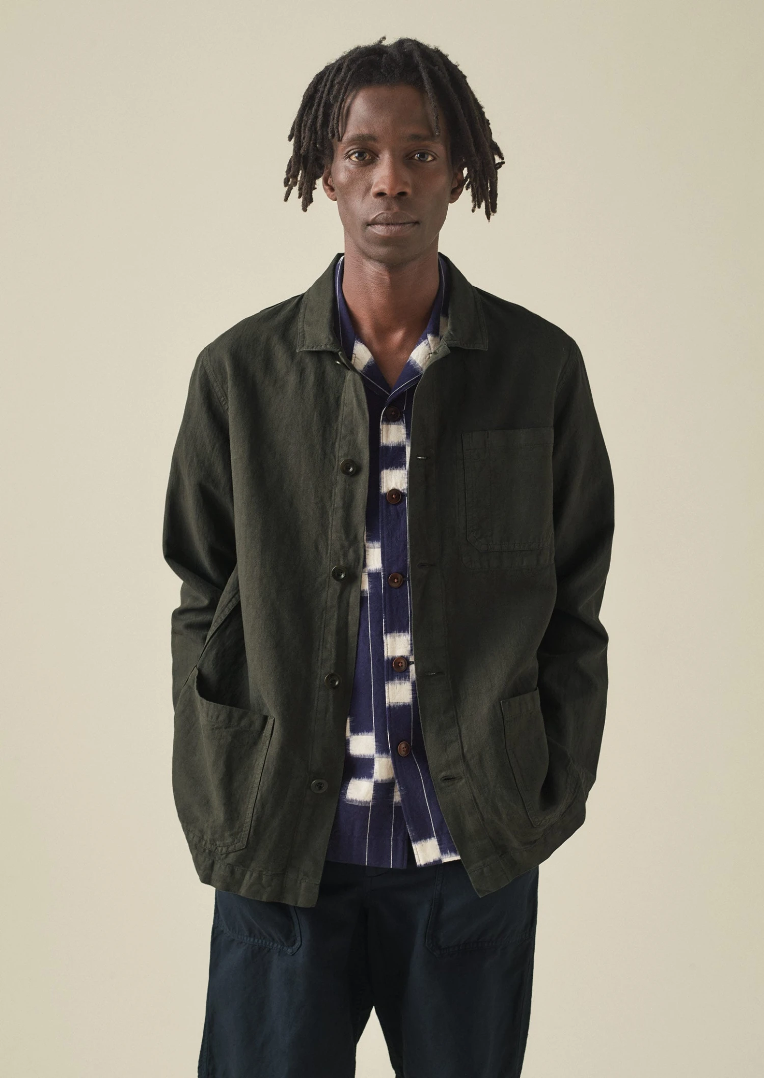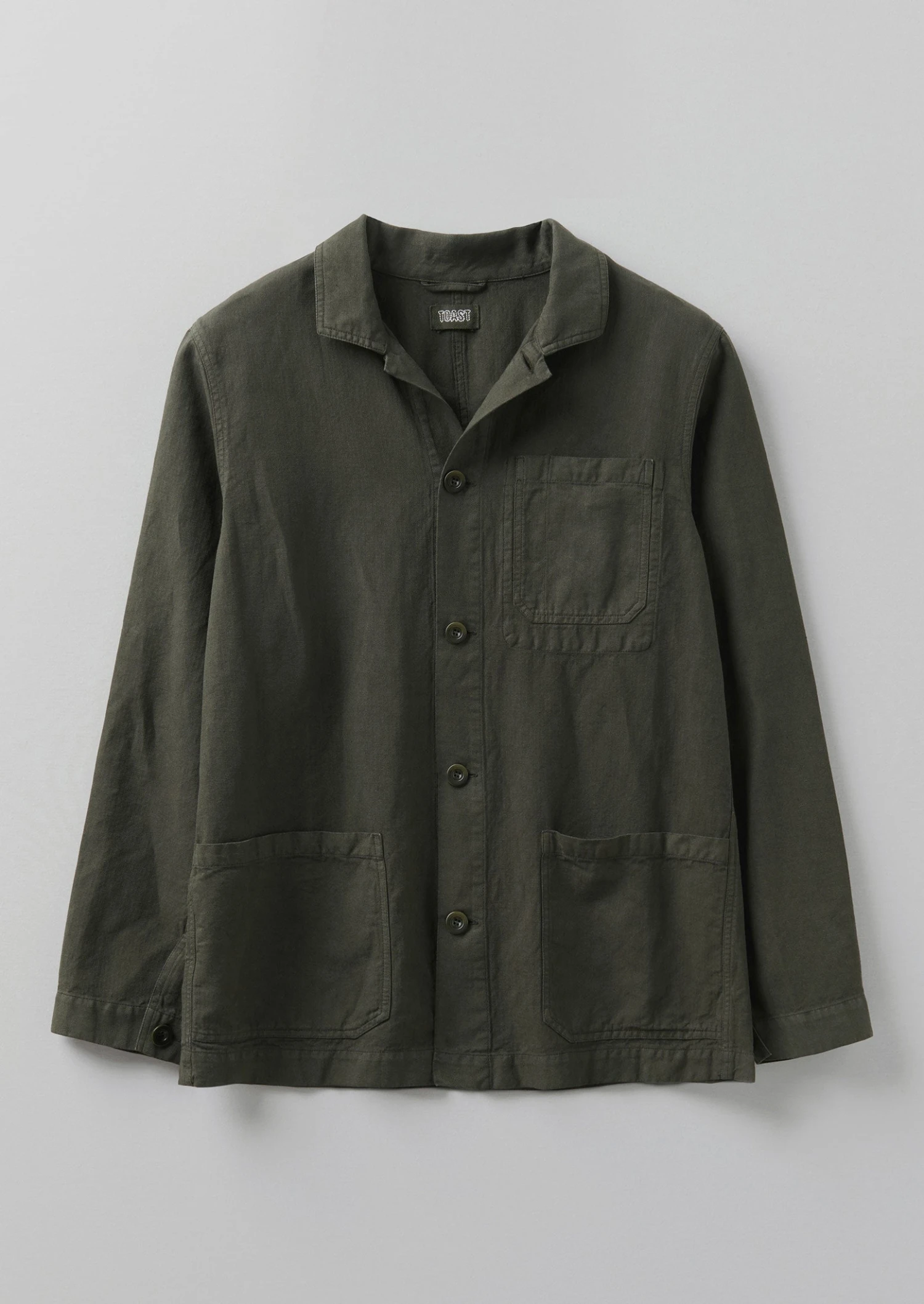 Our pared-back Arlo jacket is crafted from mid-weight cotton and linen-blend herringbone, which is garment-dyed for depth of colour. Inspired by workwear styles, with large patch pockets. Can also be layered as a shirt. Part of our Menswear collection.