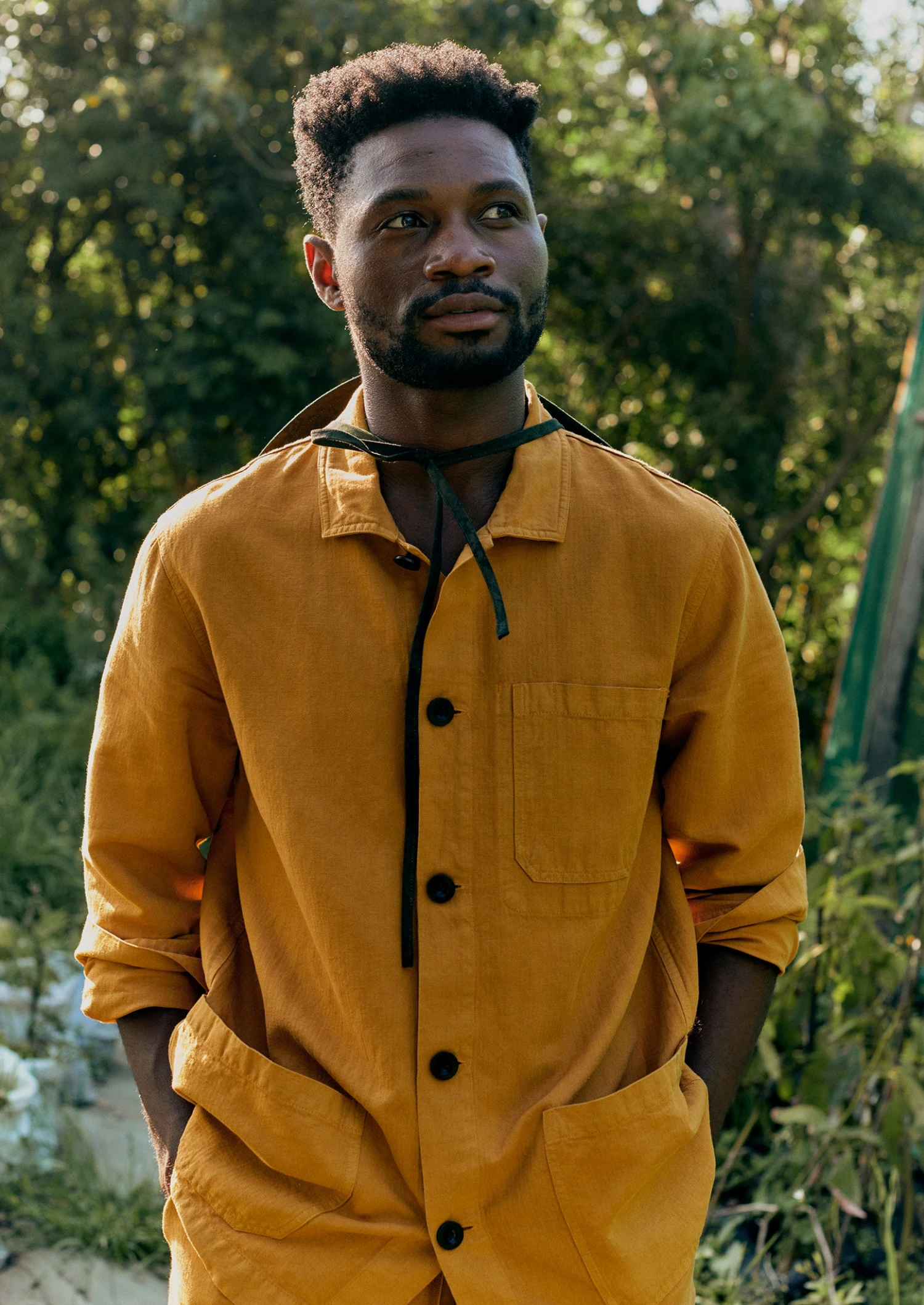 Our pared-back jacket is crafted from mid-weight cotton and linen-blend herringbone, which is garment-dyed for depth of colour. Inspired by workwear styles, with large patch pockets. Can also be layered as a shirt. Part of our Menswear collection.