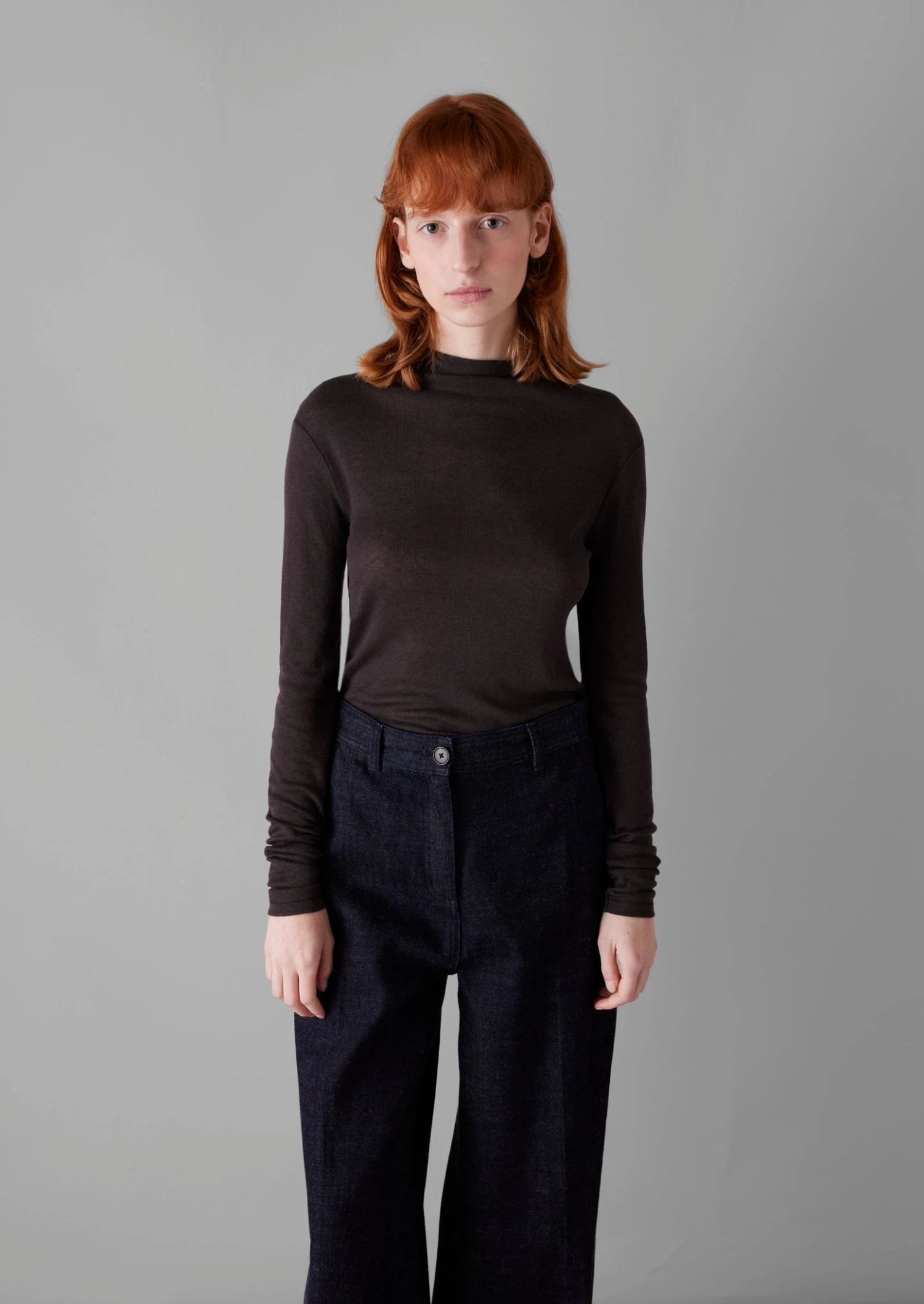 Our tee is crafted from soft jersey which is knitted from a blend of wool and lyocell, derived from wood pulp. Cut to a neat silhouette for effortless layering, with elongated sleeves.