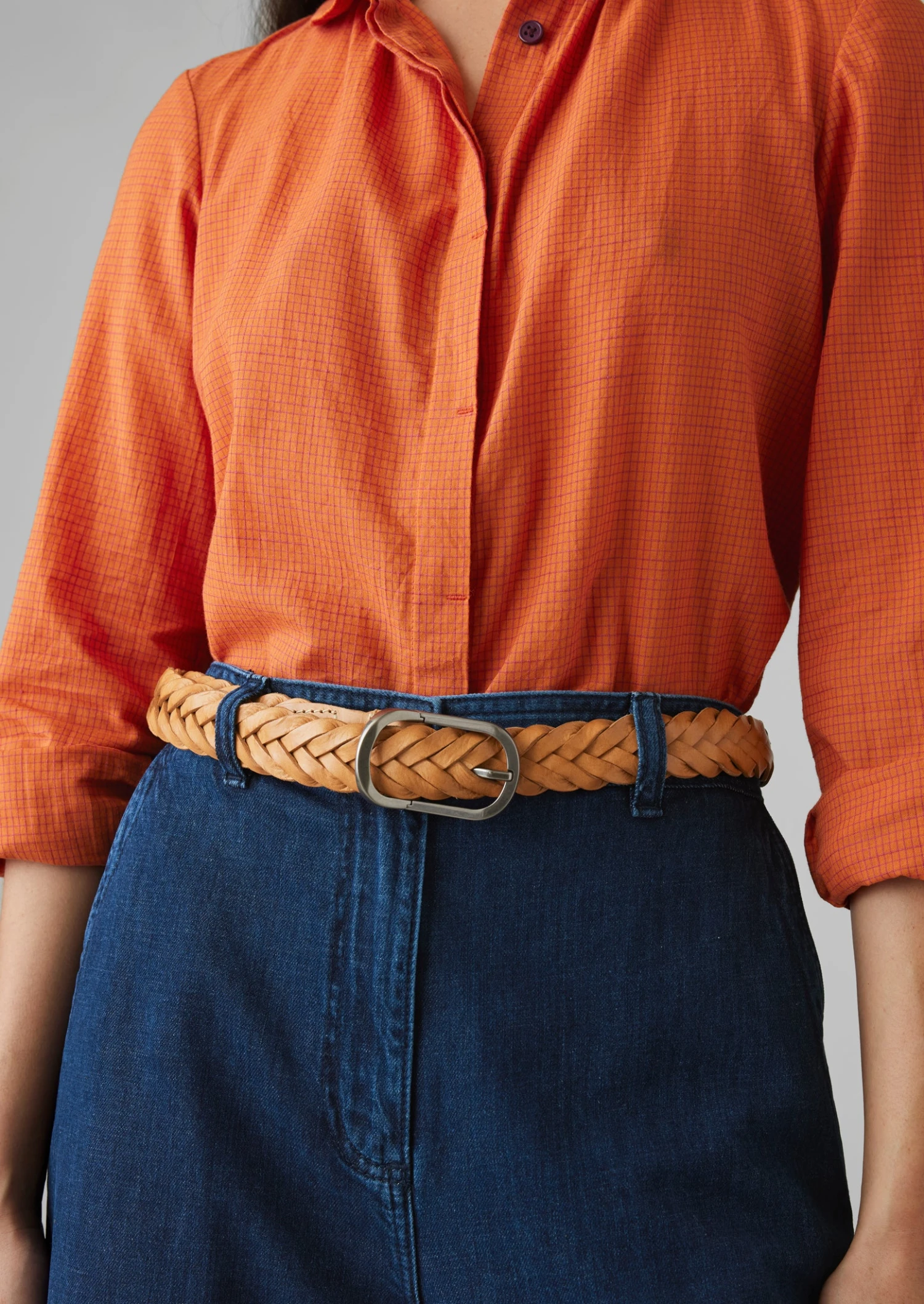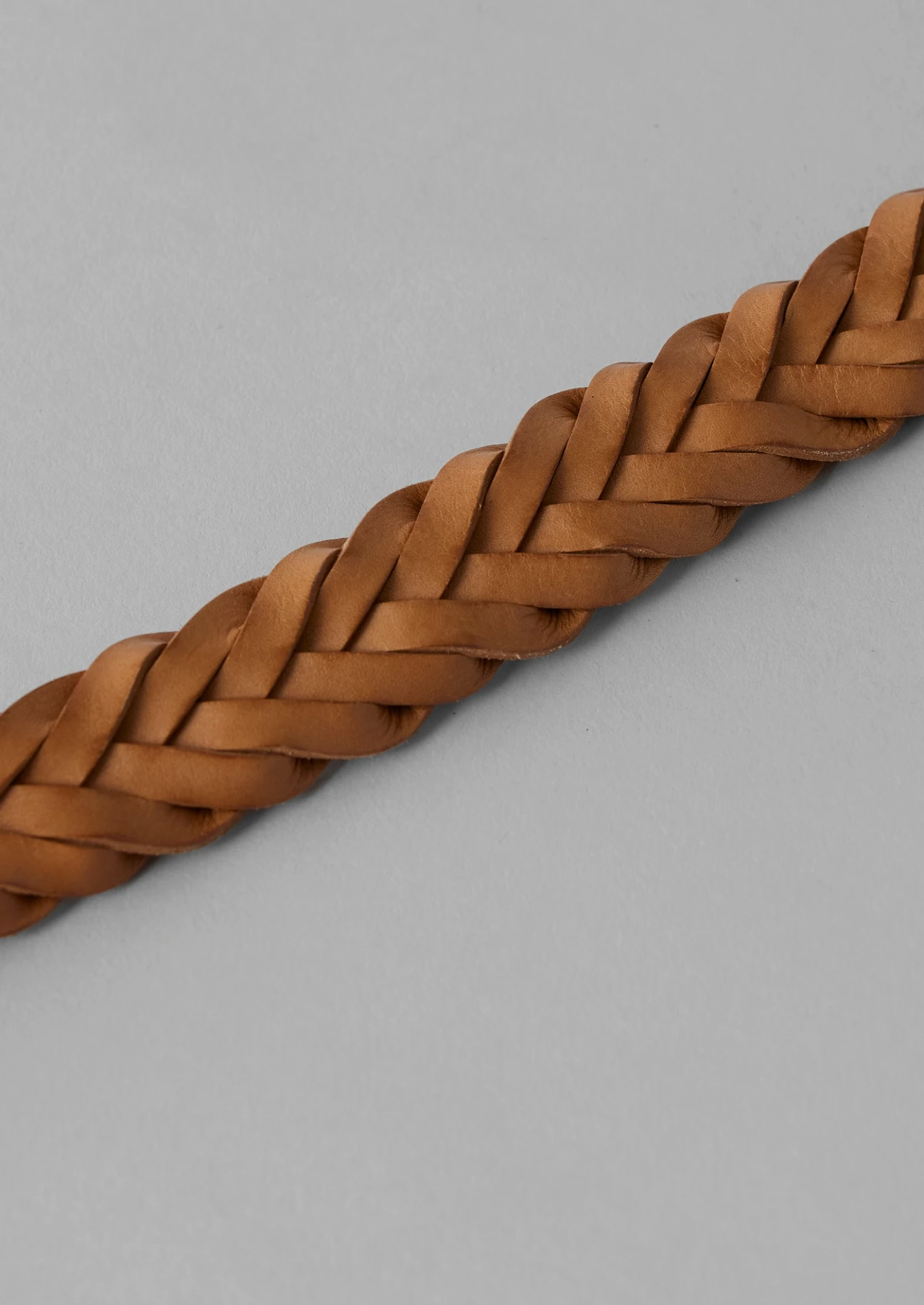 Woven belt crafted by Bleu de Chauffe in a workshop in Millau, France from vegetable-tanned leather sourced in Europe. With a curved gold-tone metal buckle.