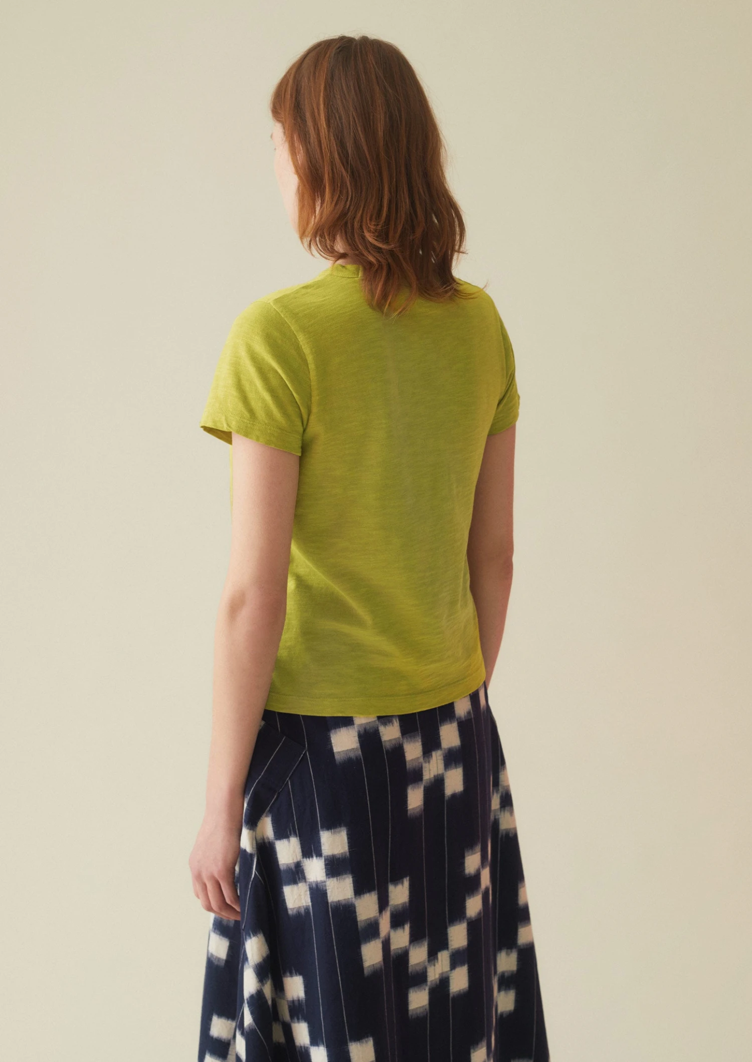Our boy tee is garment-dyed for a rich depth of colour. Crafted from soft cotton jersey to a straight shape with a high round neckline, then finished with twin-needle stitching at the edges.