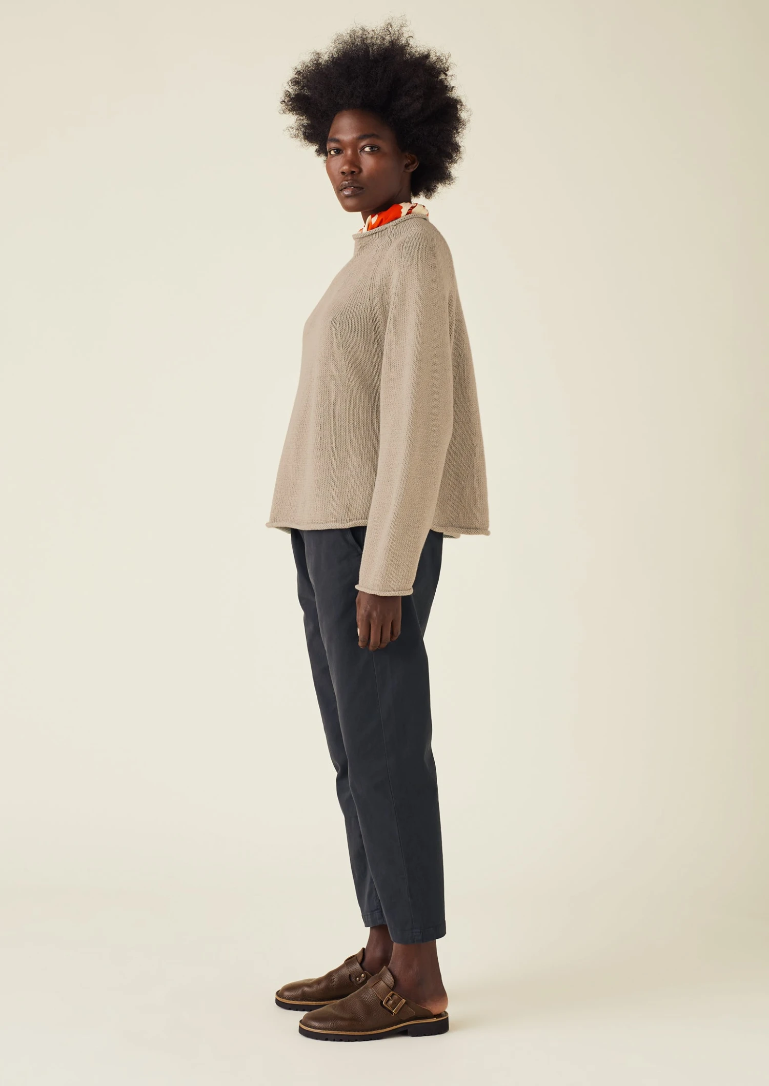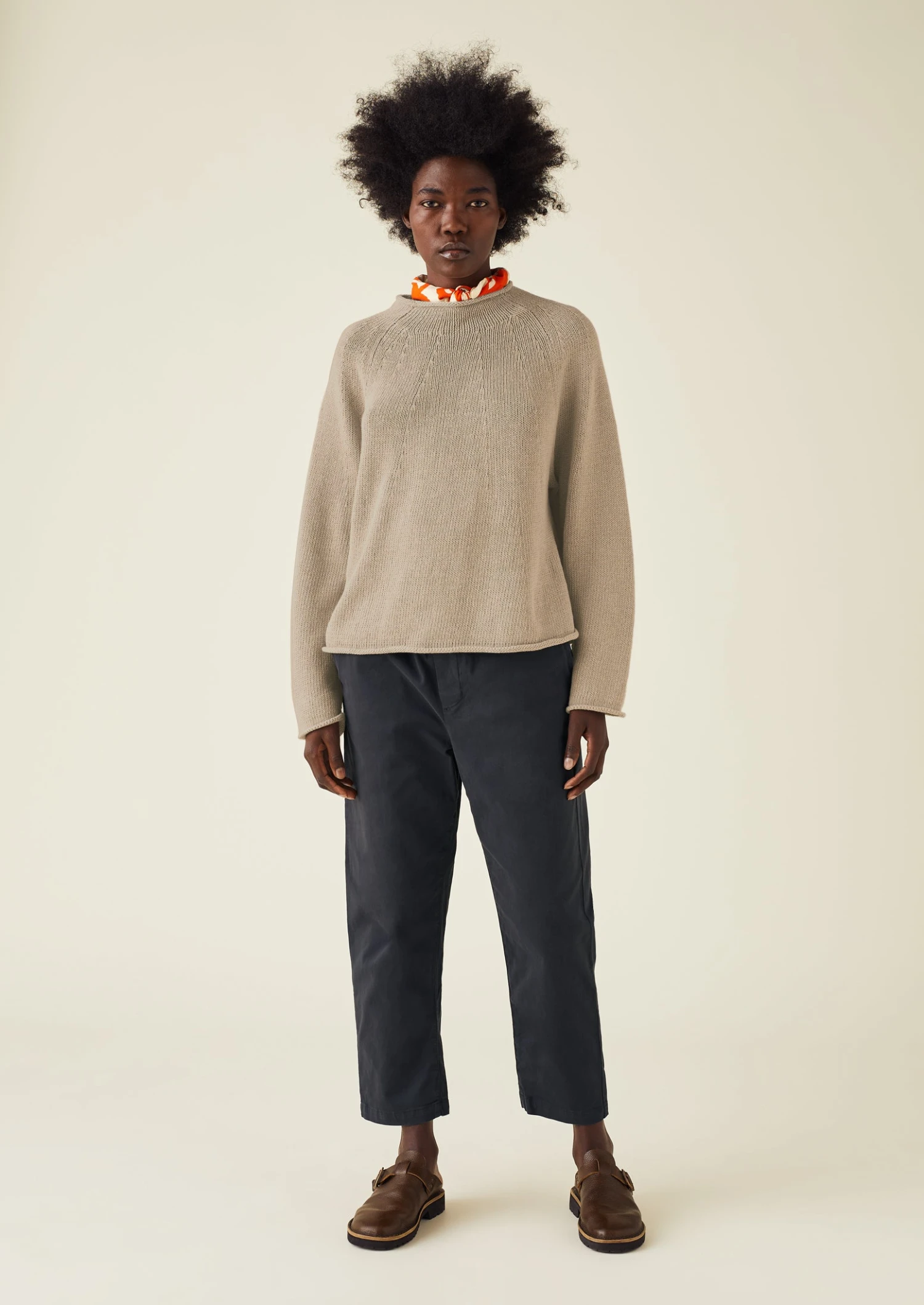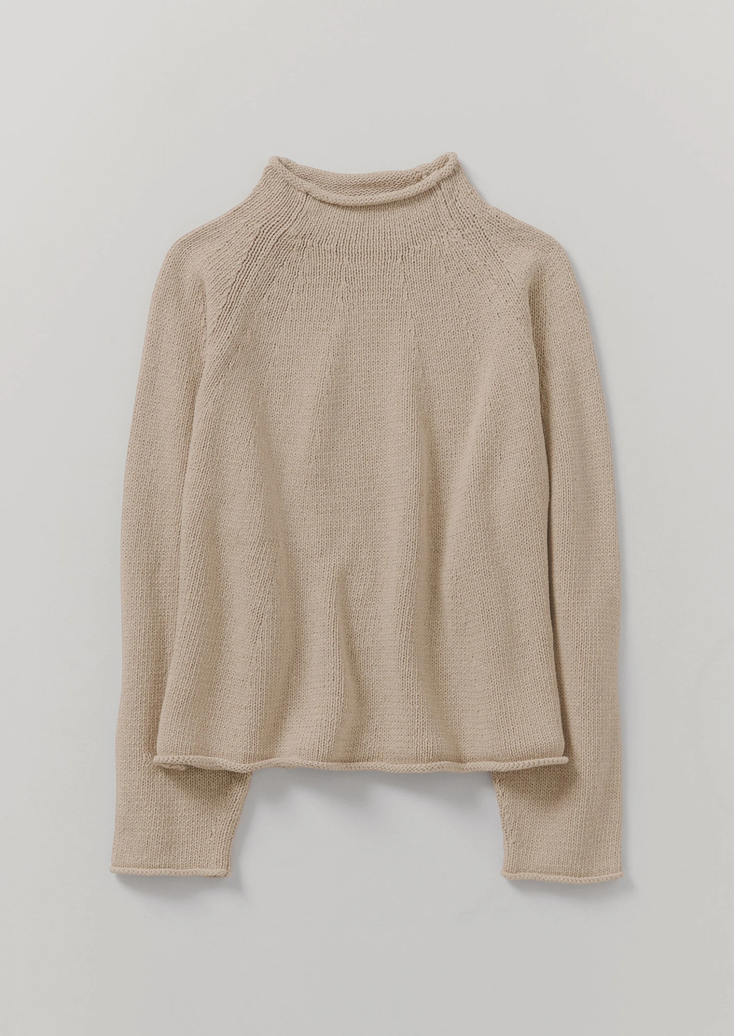 Our swingy, easy sweater has shaping at the yoke for a considered shape. Crafted from a textured, weighty linen and cotton blend to a high-neck silhouette with raglan sleeves, then finished with rolled edges.