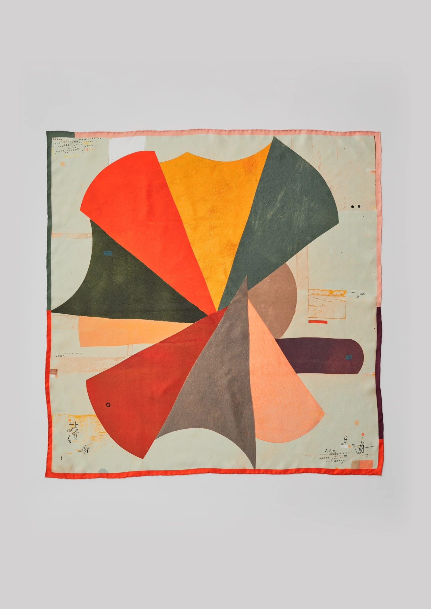 Our lustrous scarf features a vibrant design by artist Fabio Almeida. Born in Brazil and now based in the UK, he draws on the modernist movement in South America to create playful compositions.