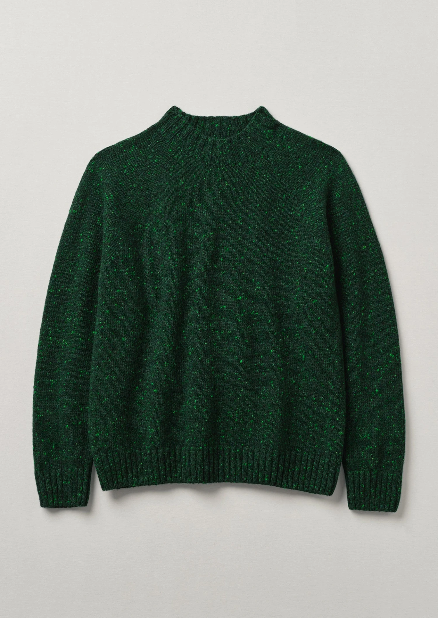 Flecky merino wool and cashmere blend. Deep crew neck. Ribbed edges.