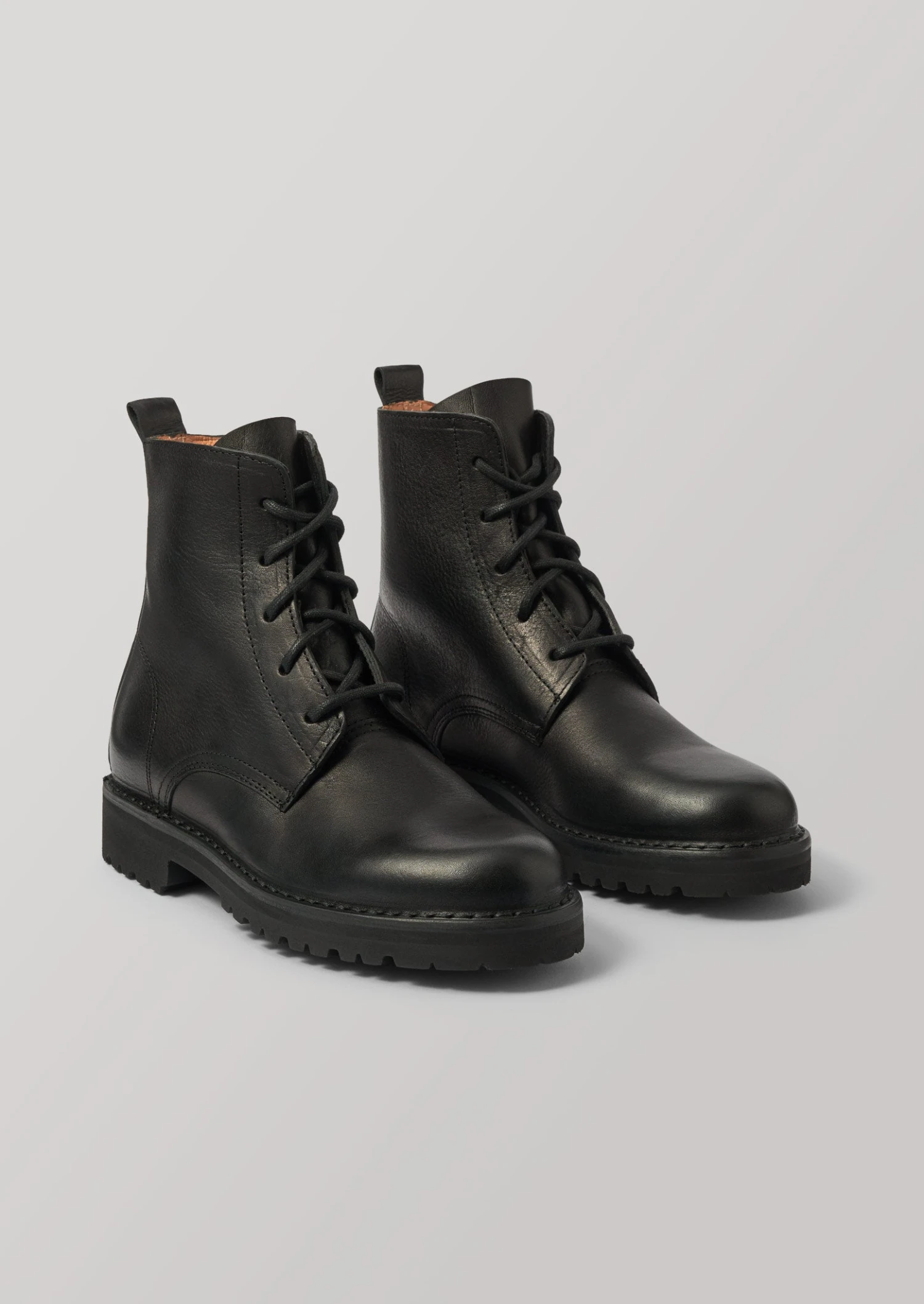 Arlen lace-up boots designed by TOAST and crafted by Fracap, a family-run business based in Puglia, using techniques passed down through generations. Moulded, stitched and finished by hand using the same original process. Made from vegetable-tanned grained leather and set on a sturdy rubber Vibram sole.