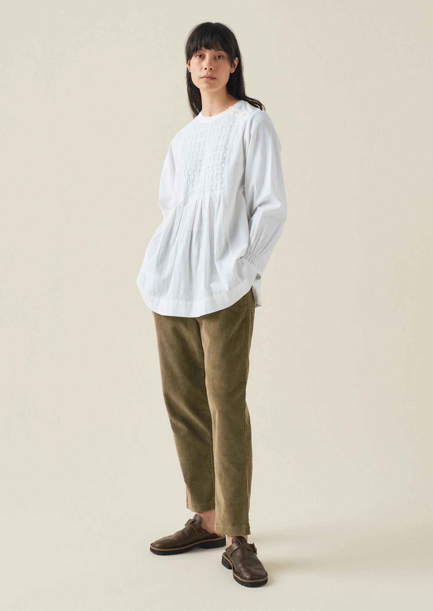 Our simple Gabi trousers are shaped with easy legs that taper towards the long cropped cuffs. Crafted from organic cotton cord with a comfortable elasticated waist, then finished with back welt pockets.