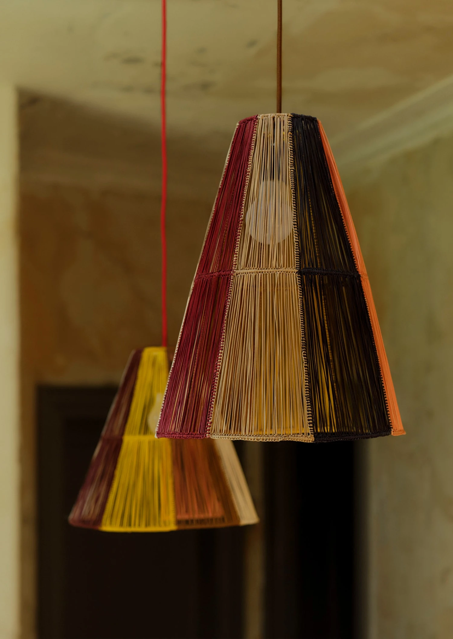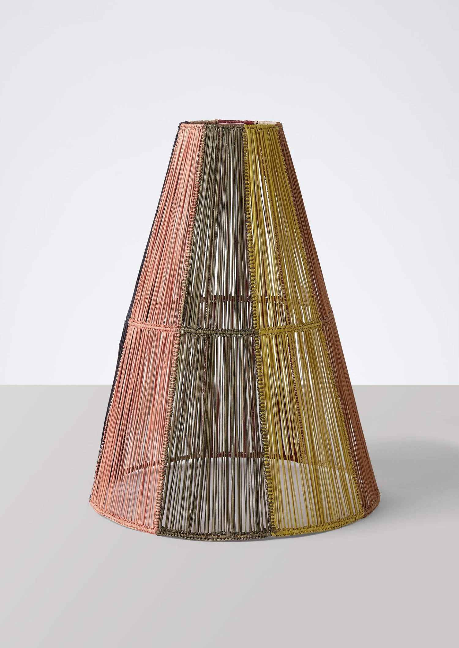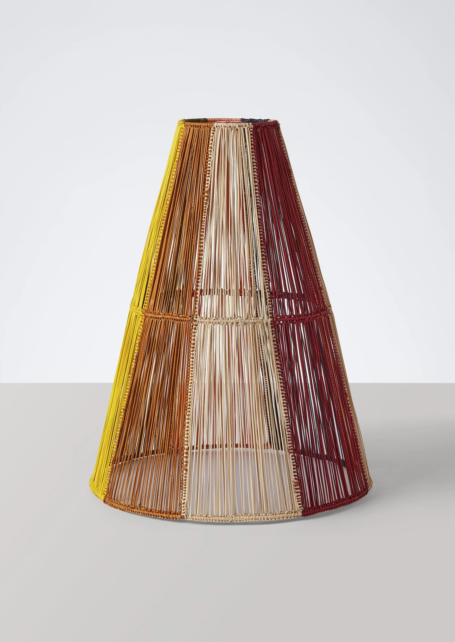Large lampshade crafted exclusively for TOAST by women artisans in Colombia supported by Guanabana, which focuses on preserving traditional techniques. Handwoven from iraca straw, also known as toquilla, to an elongated conical shape. With colour-block stripes, creating a hazy impression when the light shines through. Can be hung alongside our medium lampshade to create a vibrant installation.
