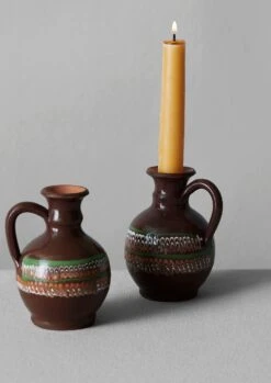 Casa De Folklore Horezu Dinner Candle Holder | Cocoa/Rust/Verdigris