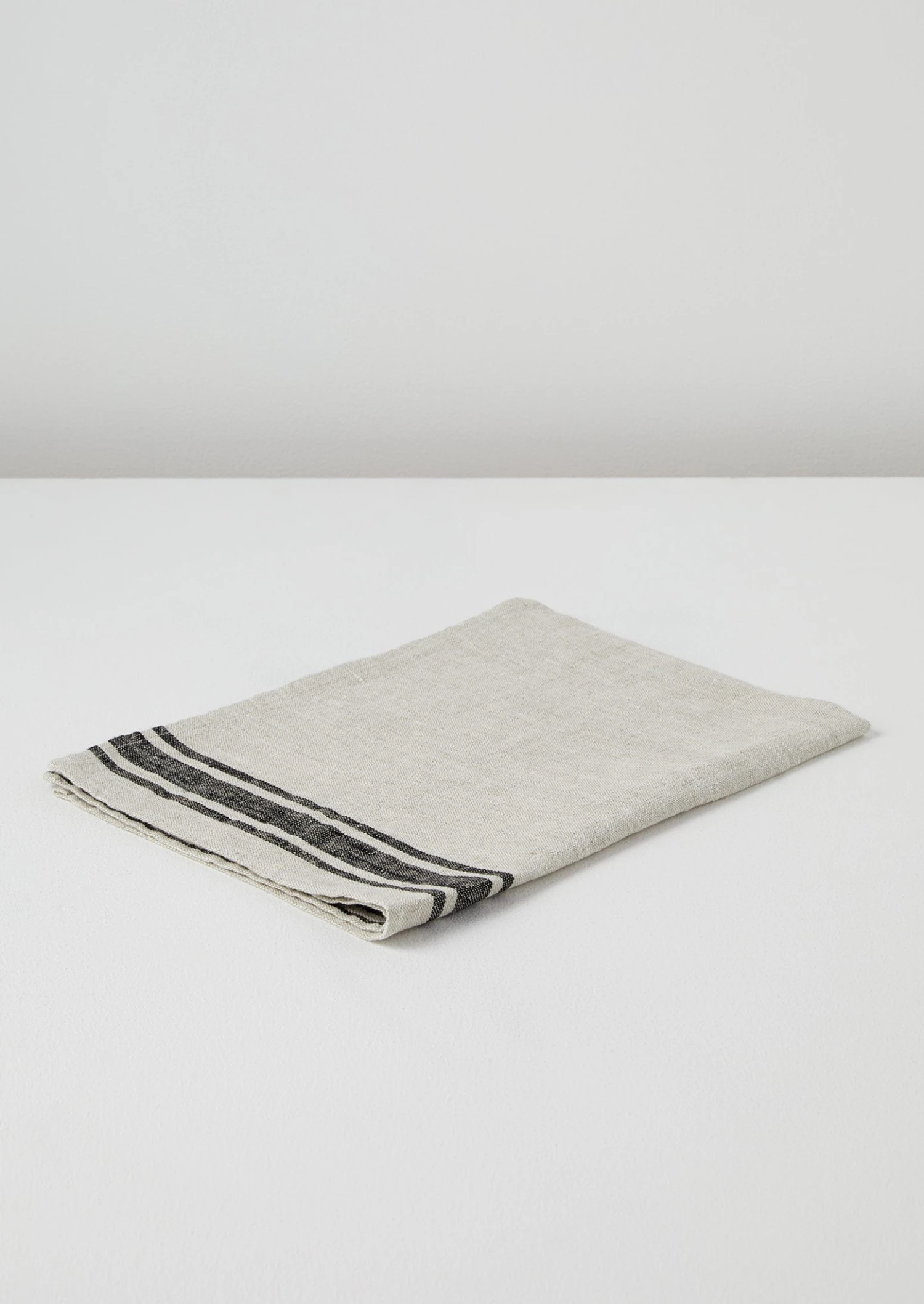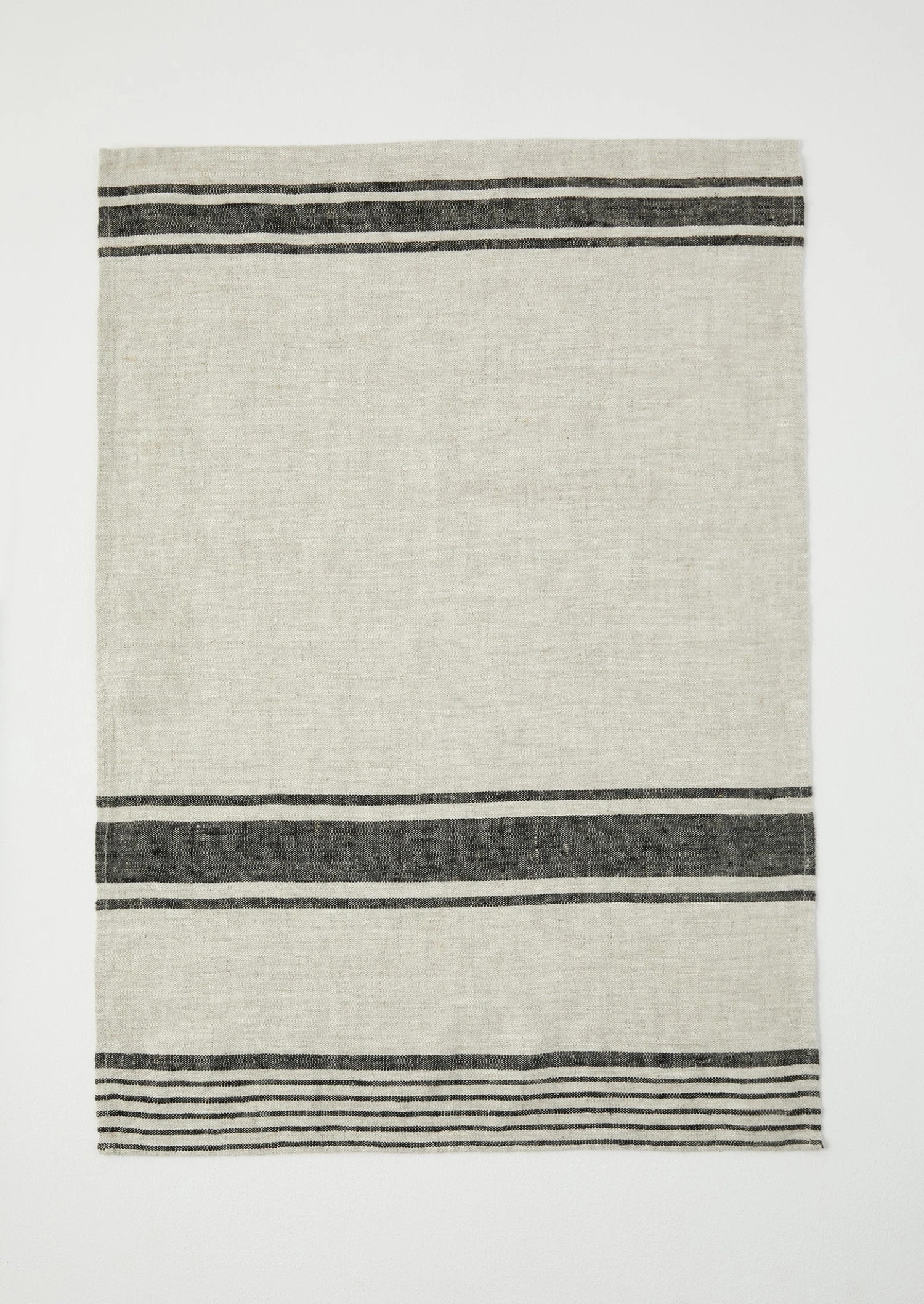 Good quality, absorbent, washed linen tea towel with an irregular yarn-dyed stripe. Cotton herringbone hanging loop. Woven by a traditional Lithuanian mill.