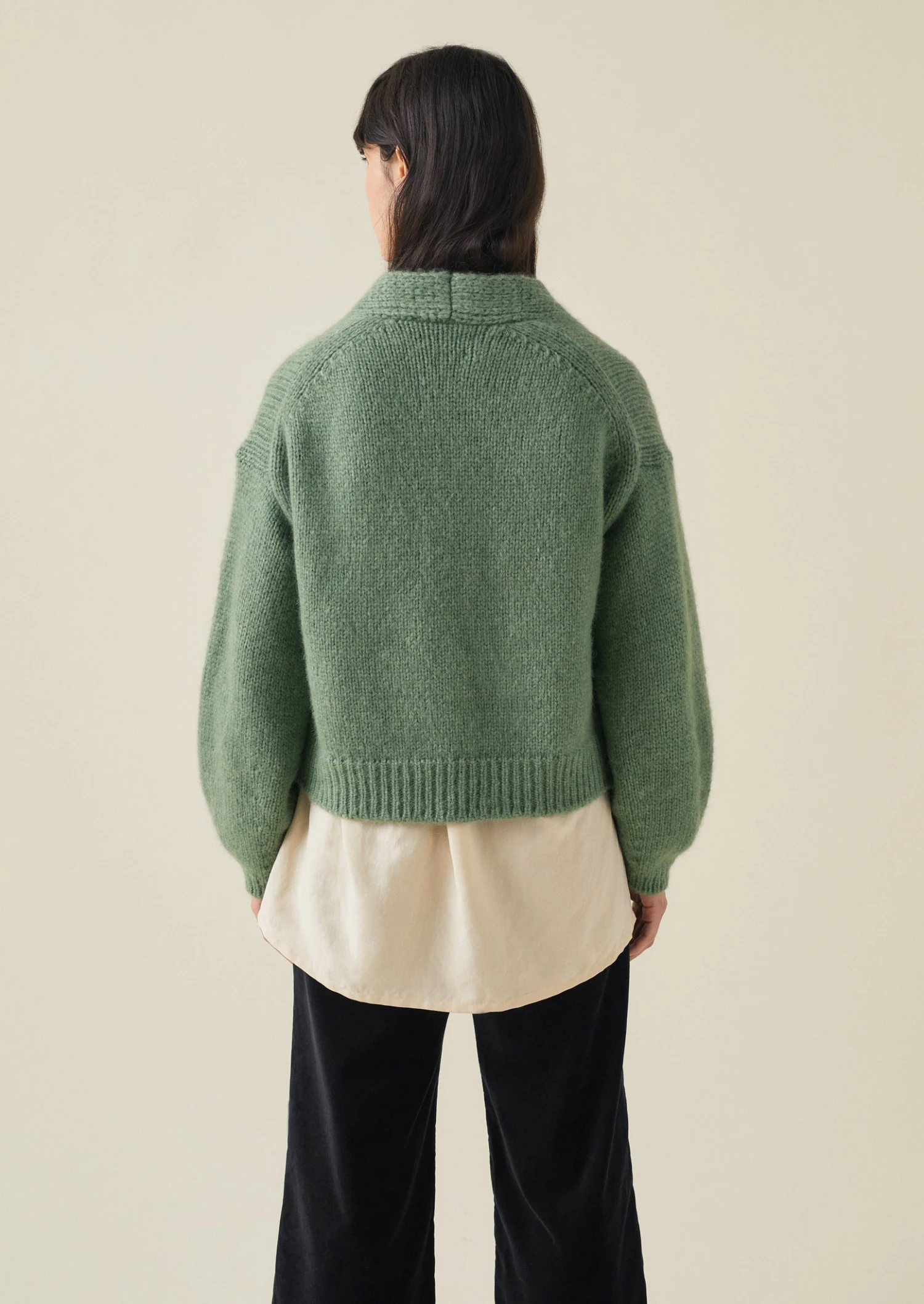A rounded shape heightens the cocooning feel of our lofty cardigan. Knitted from alpaca, merino and cotton with set-back shoulders and full balloon sleeves for carefree layering.