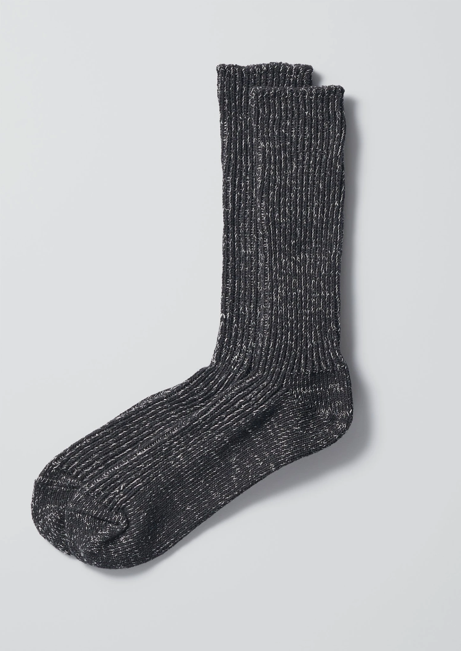 Marled, breathable cotton and hemp-blend socks crafted by Nishiguchi Kutsushita, a Japanese sock company established in 1950. Made in a small workshop using old knitting machines and shaped with defined ribbing.