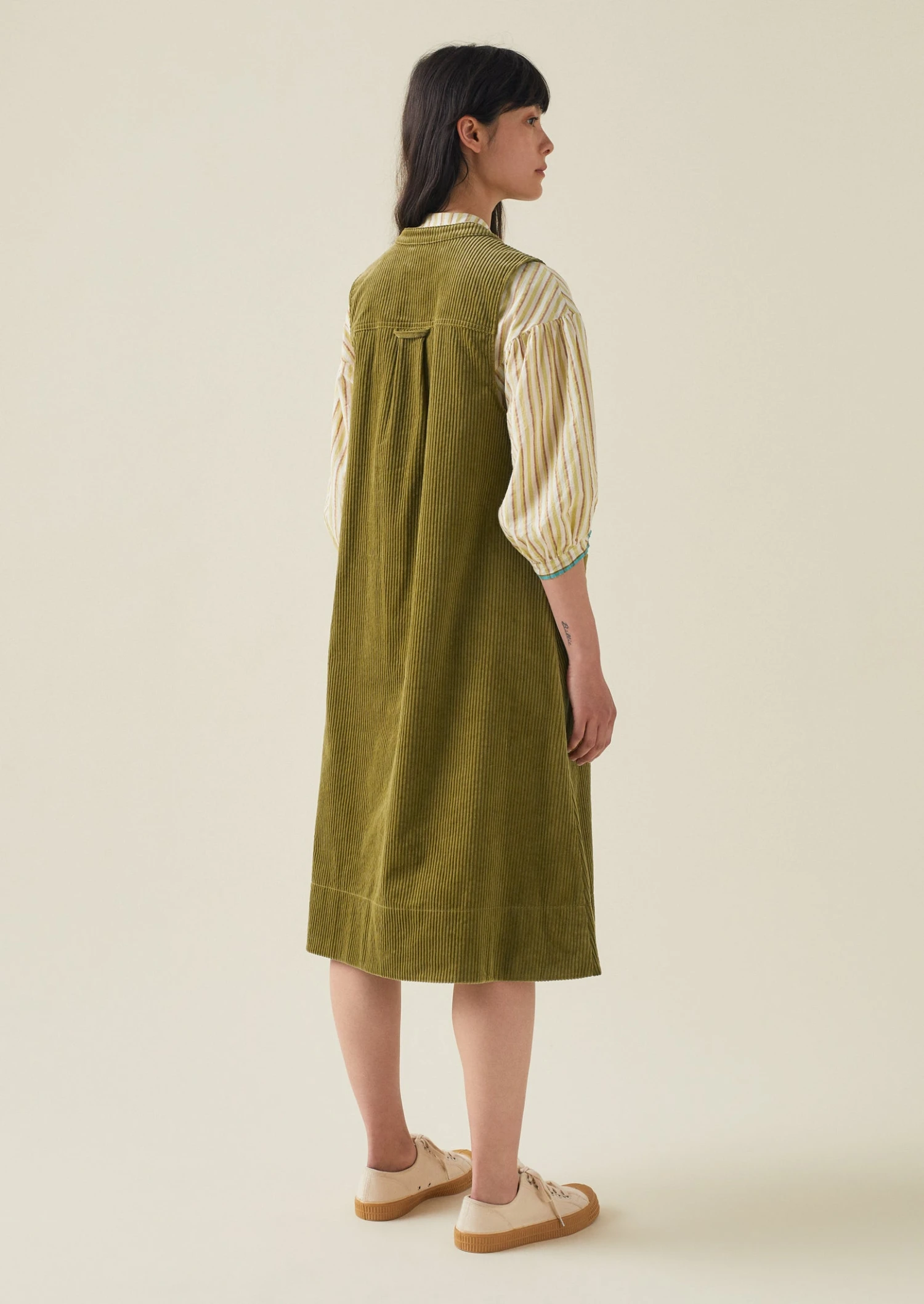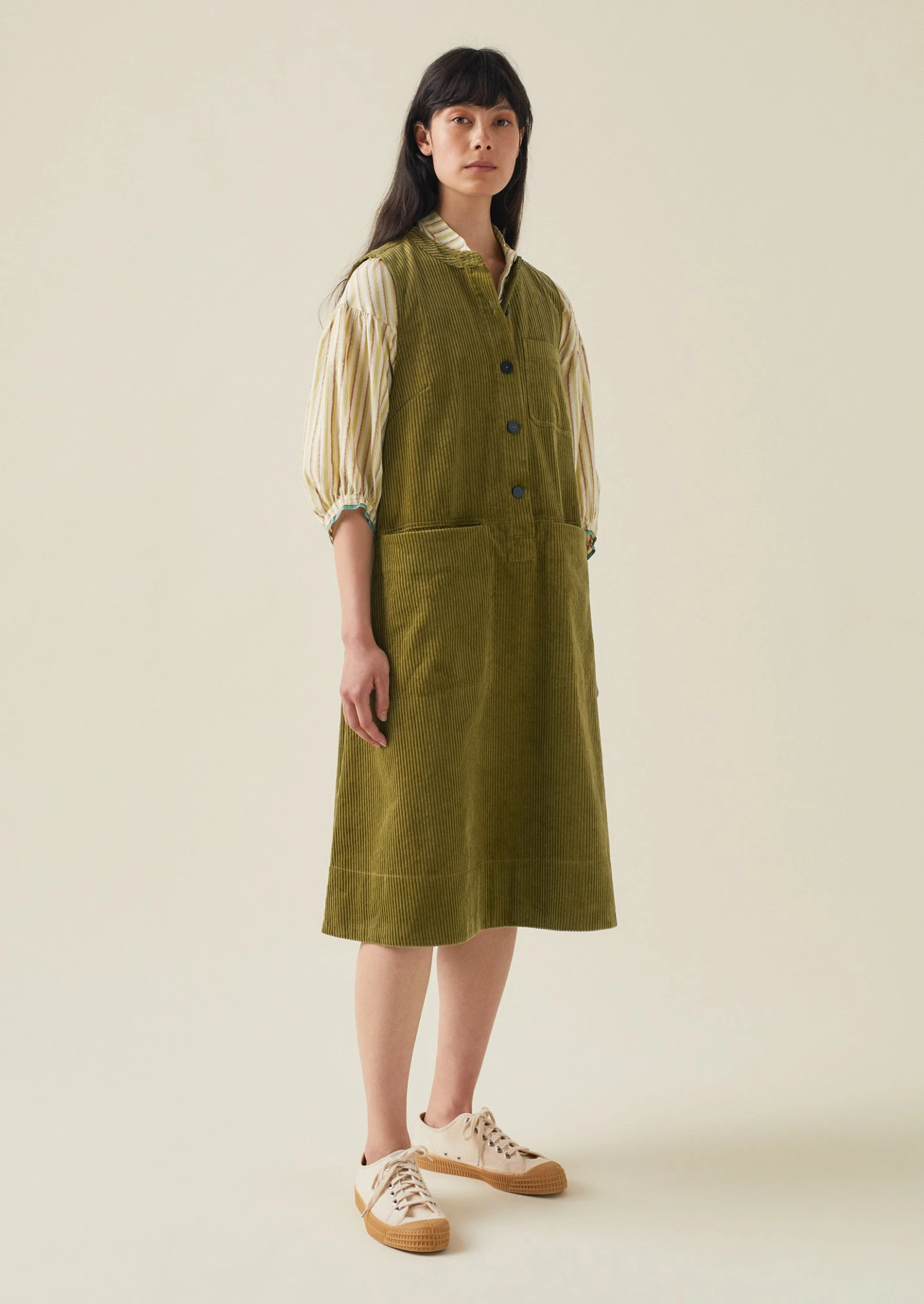 A back box pleat brings volume to the easy A-line shape of our tunic dress. Crafted from organic cotton cord with a neat band collar, then finished with front top-access slit pockets.