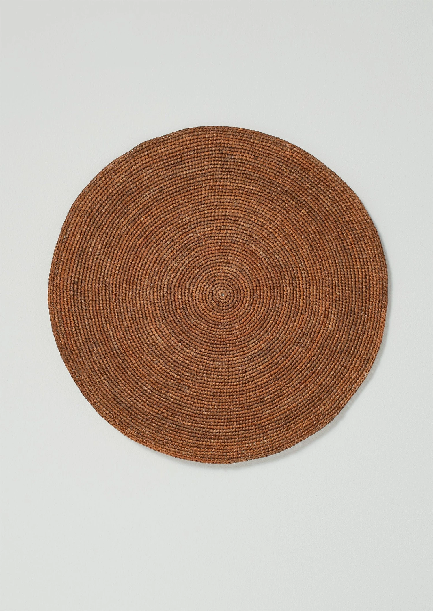Round raffia placemat hand-dyed and hand-crocheted in Madagascar from the natural fibres of the native raffia tree. The naturally strong raffia fibres are favoured for their soft, flexible and biodegradable qualities. Due to the hand-dye process the colour and tone will vary slightly from piece to piece.