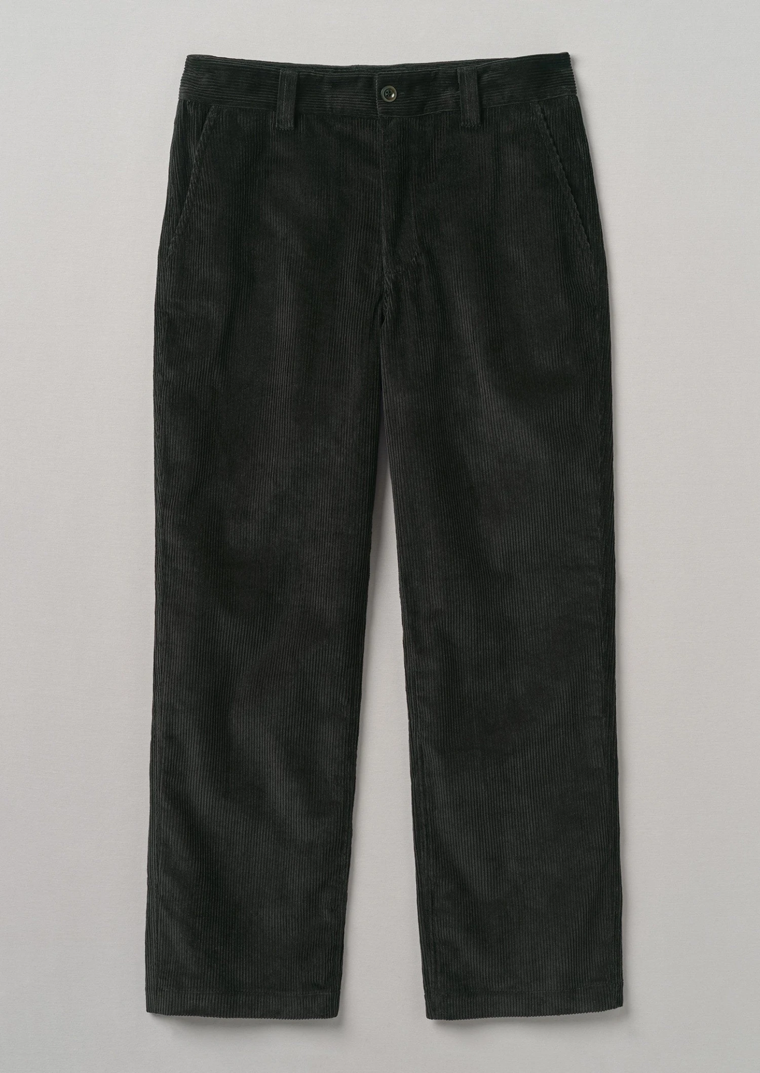 Organic cotton cord. Straight legs. Slanted side pockets. Back buttoned patch pockets. Front corozo button and zip.