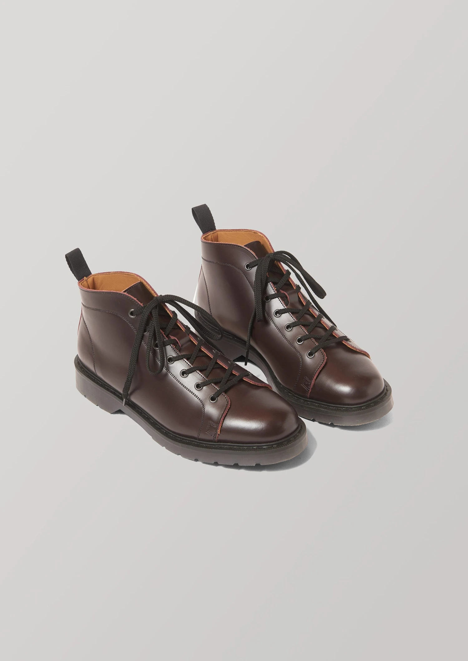 Monkey boots designed by TOAST and handmade in Northamptonshire by Solovair. Crafted from leather with a sturdy Goodyear-welted recycled rubber sole and finished with subtle gunmetal eyelets. A new sole can be put back onto the original last by any good high street cobbler. Part of our Menswear collection.