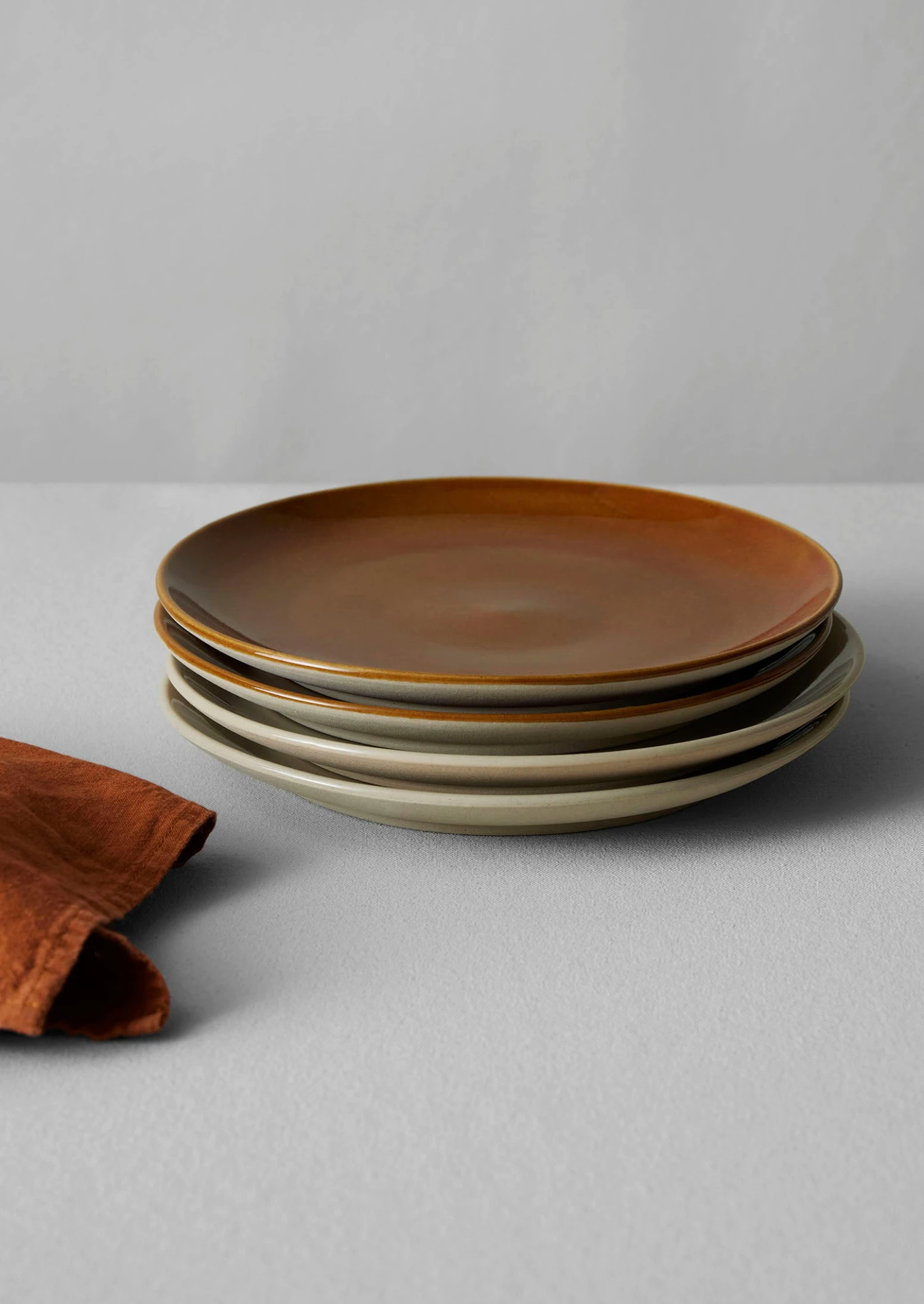 Fair Trade stoneware dinner plate handcrafted by artisans in Bat Trang, a small village in the north of Vietnam that has a long tradition of pottery making. The pottery has been owned by one family for eight generations and is supported by Kinta. Crafted to a round shape with a small foot and finished with a smooth glazed interior, balanced by the raw unglazed base.