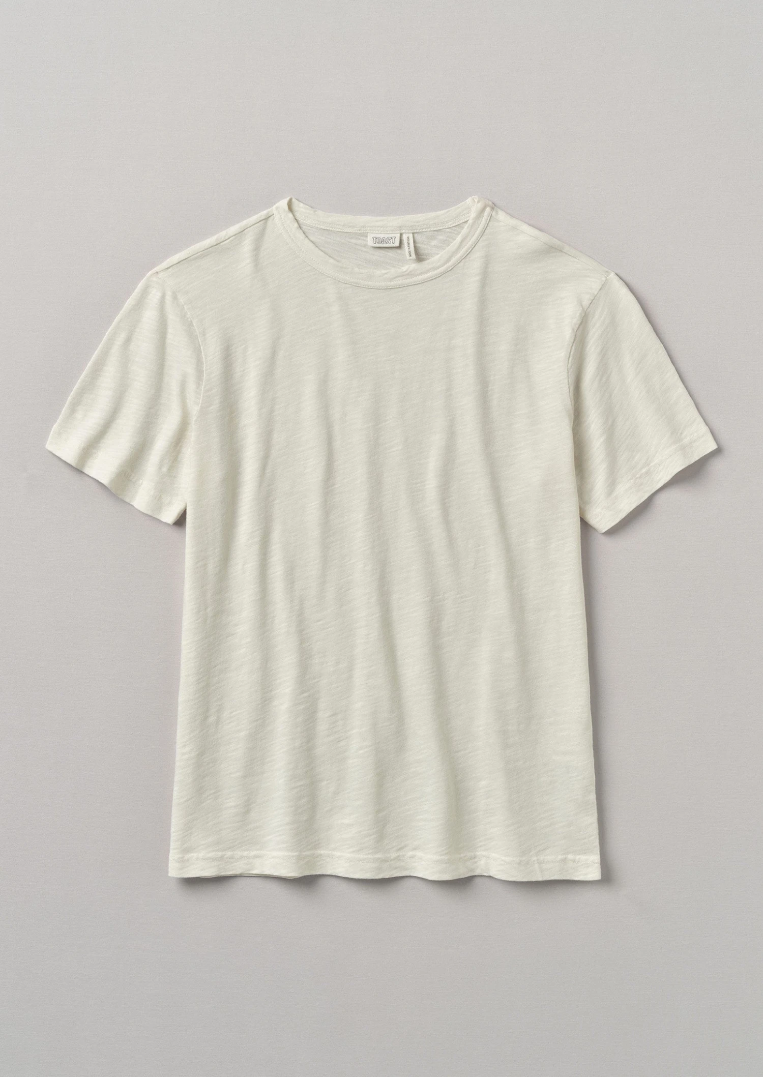 Slubbed cotton jersey. Garment-dyed. Round neck. Gently dropped sleeves.