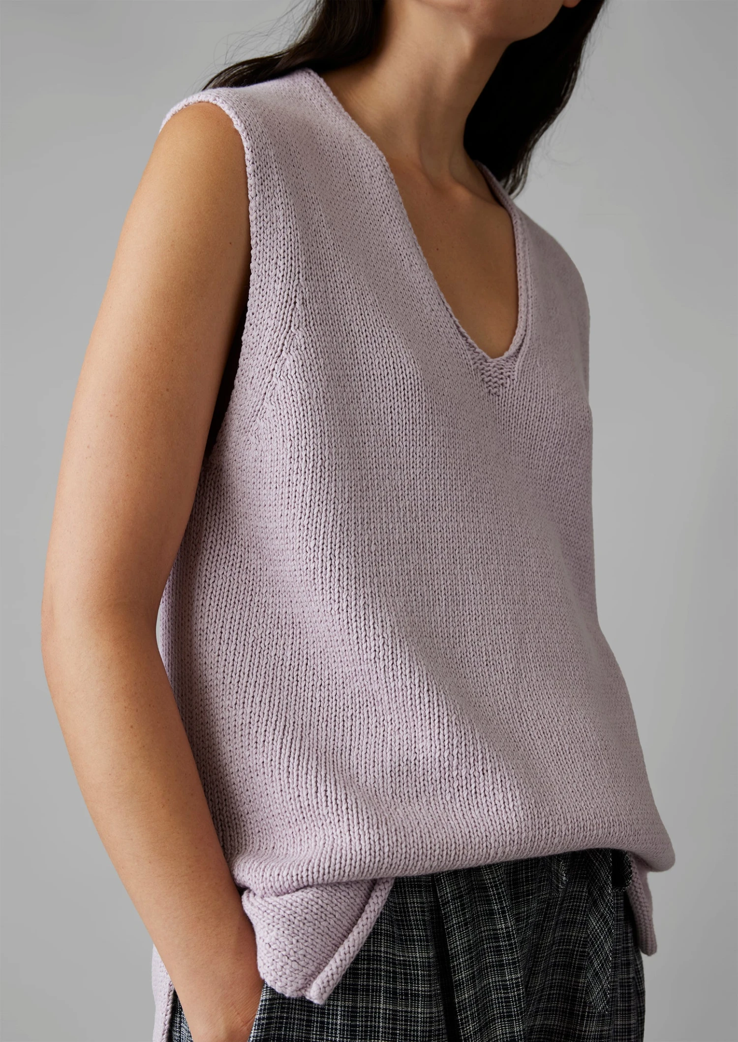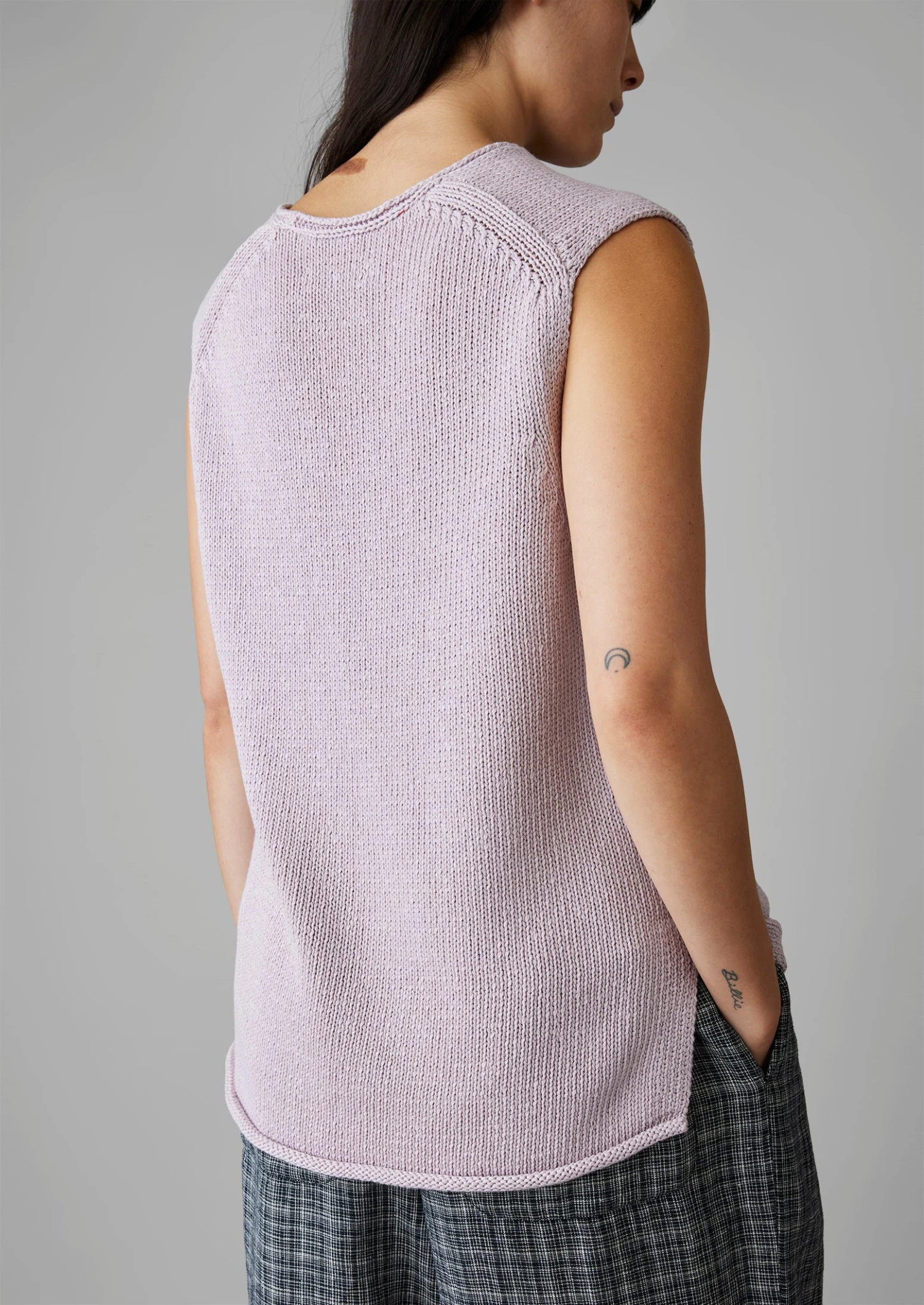 A rolled hem complements our minimalist tank. Knitted from a blend of cotton and linen to a simple shape with set-back shoulders.