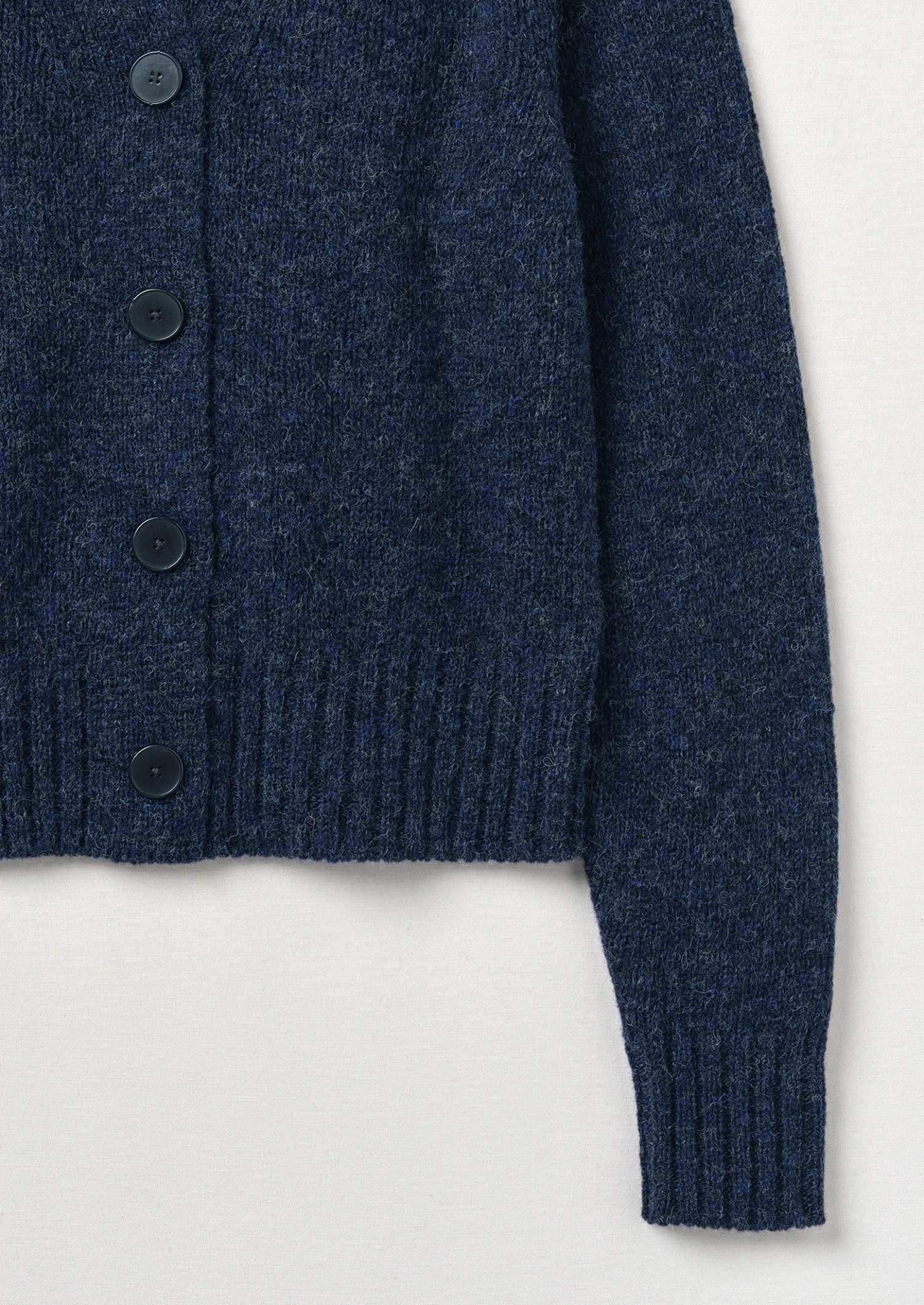 A high V-neck and wide placket underscore the vintage influences of our cardigan. Knitted in Turkey from heathered wool yarn also spun in the country to a neat shape, sitting at the top of the hip.