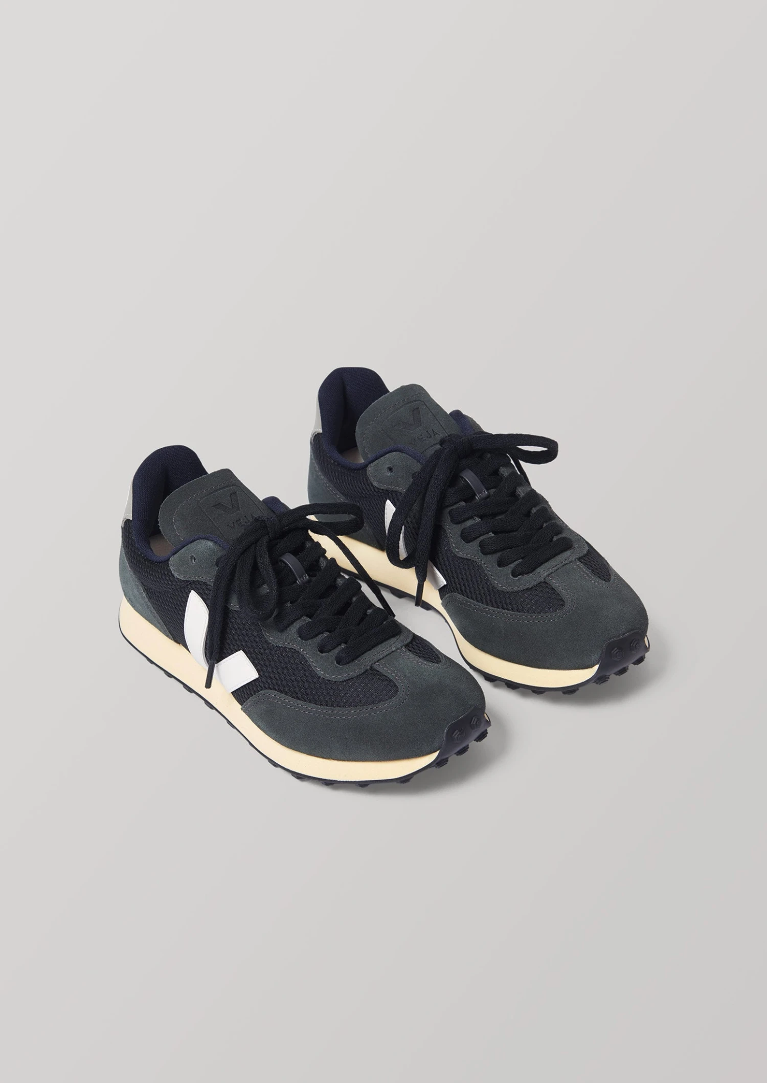 Upper: Alveomesh (100% recycled plastic bottles). Panels: Suede & leather. V: Rubber & 22% rice waste. Midsole: 52% sugar cane. Outsole: 12% Amazonian rubber & 30% rice waste. Insole: Sugar cane, Amazonian rubber, recycled EVA & organic cotton. Lining: Tech (100% recycled plastic bottles). Laces: 100% organic cotton