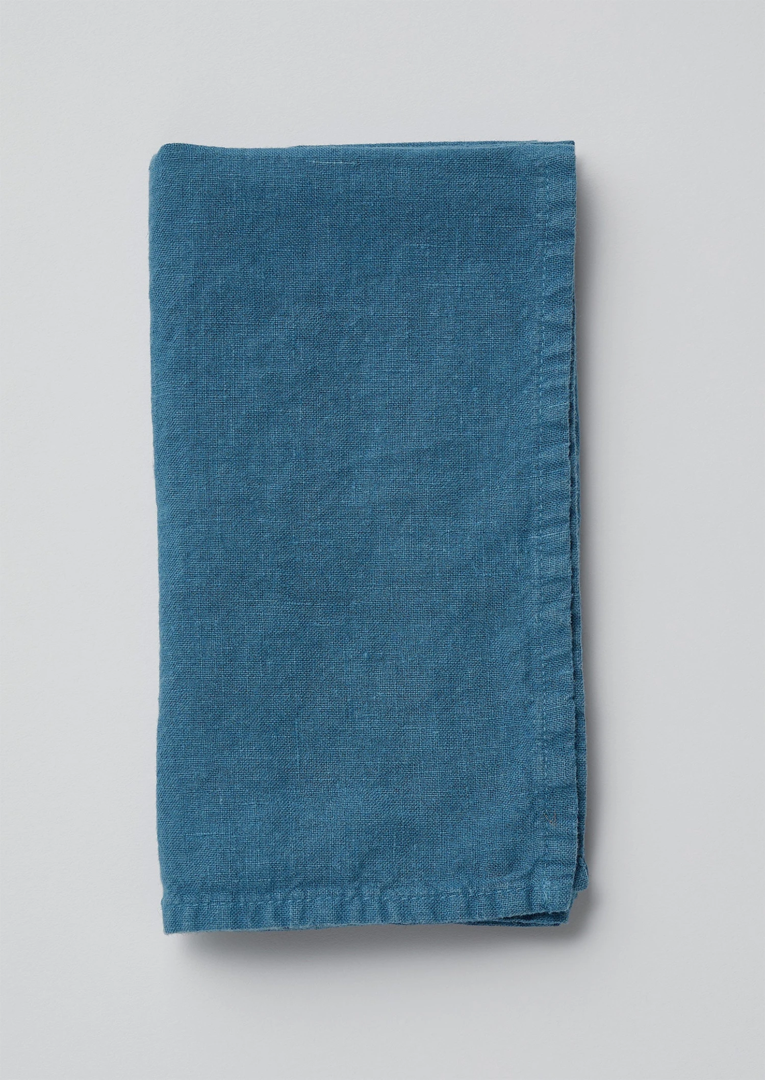 Simple napkin crafted from mid-weight, supple washed linen from the Baltic region. Neat, double-stitched edges.