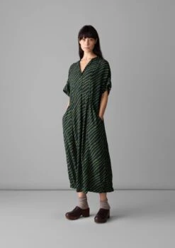 Freya Crinkle Organic Cotton Dress | Darkest Olive