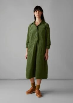 Open Collar Needlecord Shirt Dress | Propagator Green