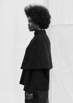 Lofty Alpaca Blend Knitted Poncho | Navy
