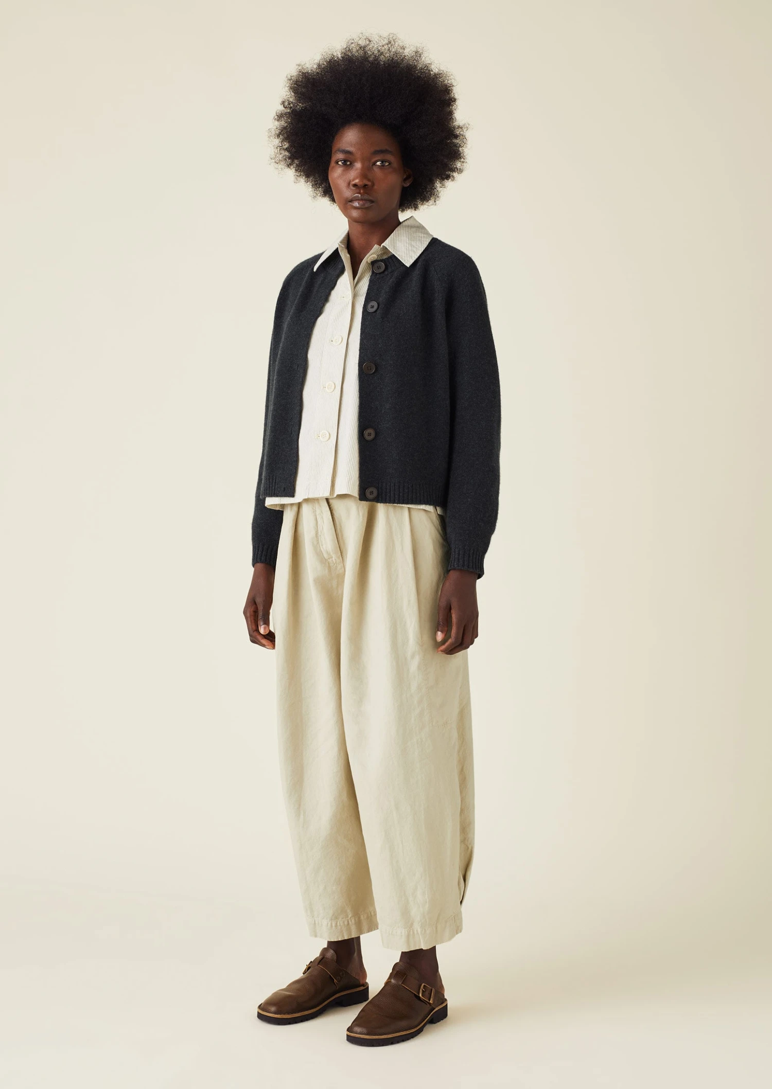 Wool Cashmere Raglan Cardigan | Charcoal