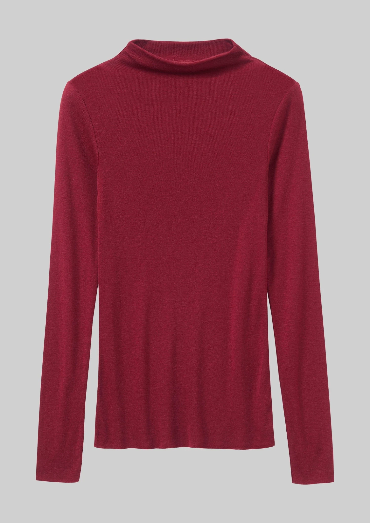 Tencel and wool-blend jersey. High neck. Elongated sleeves. Baseball-stitched cuffs and hem.