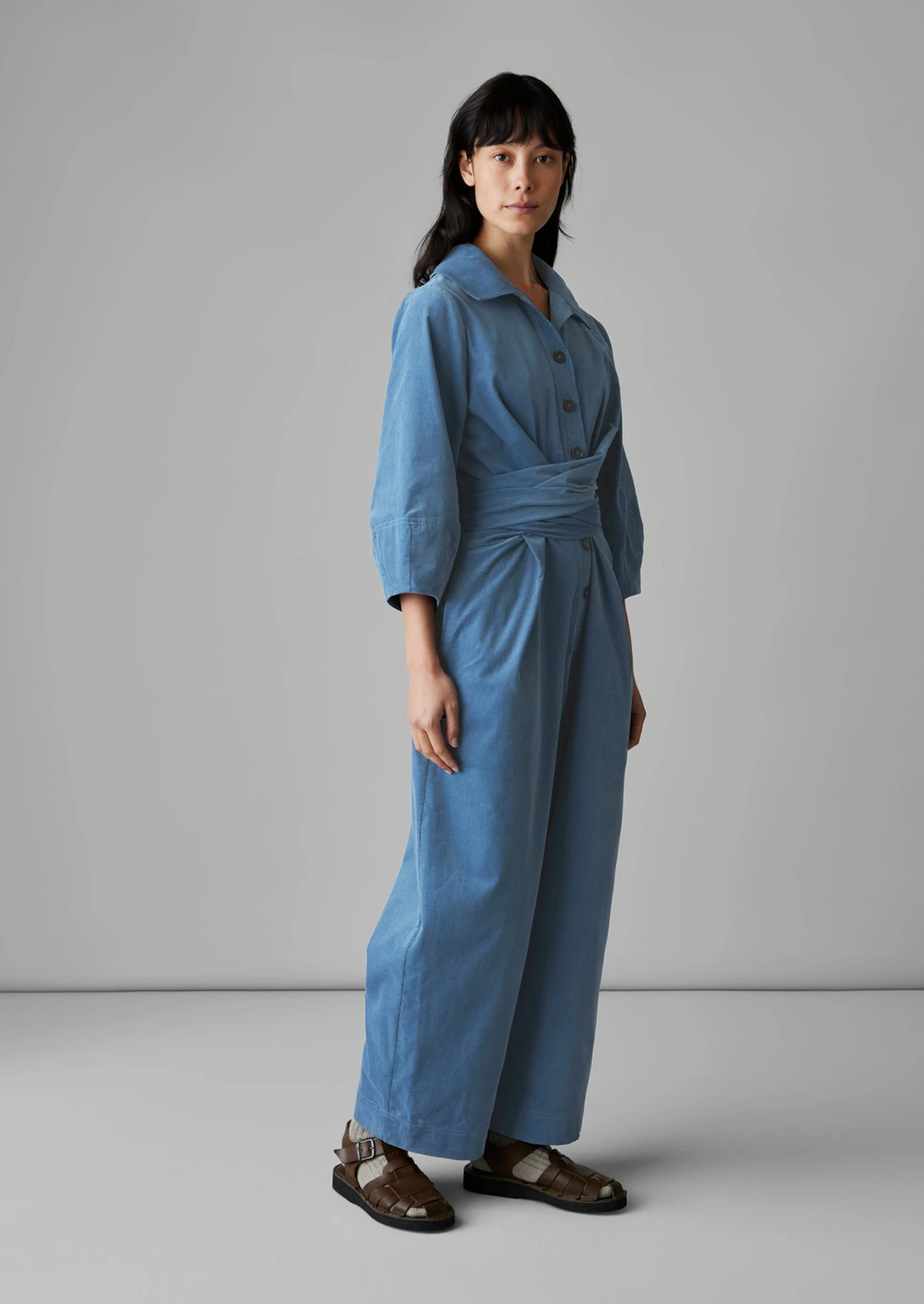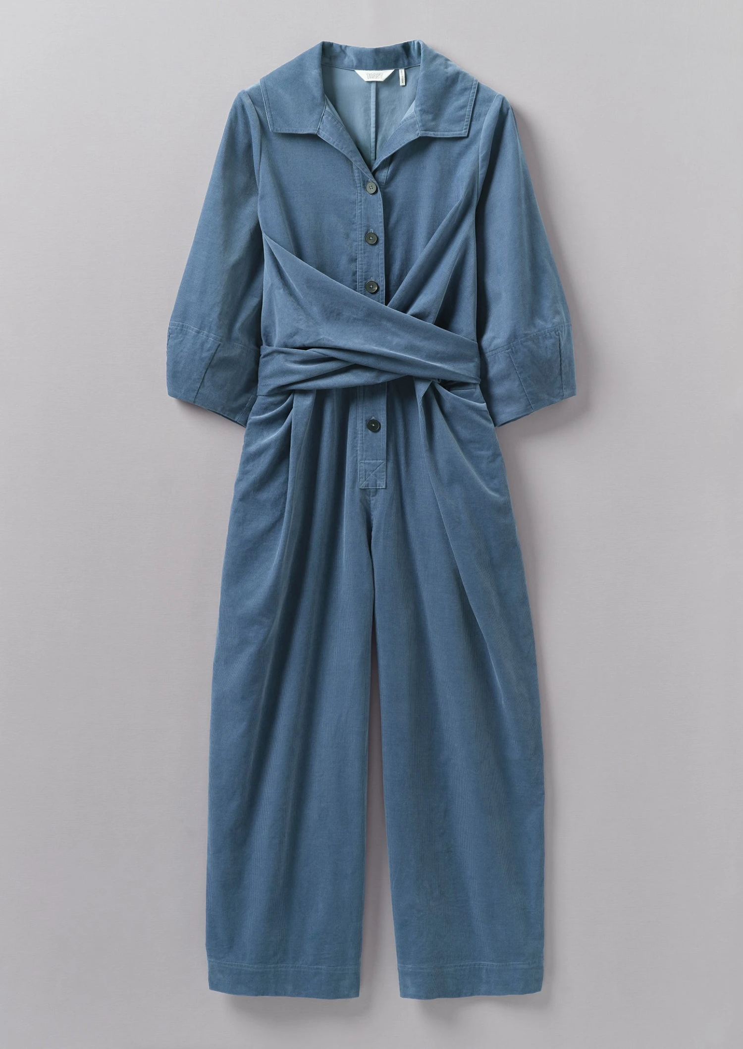 Our jumpsuit features wide waist ties which can be secured at the front or back for effortless styling. Crafted from organic cotton needlecord to a wide-leg shape and finished with side pockets.
